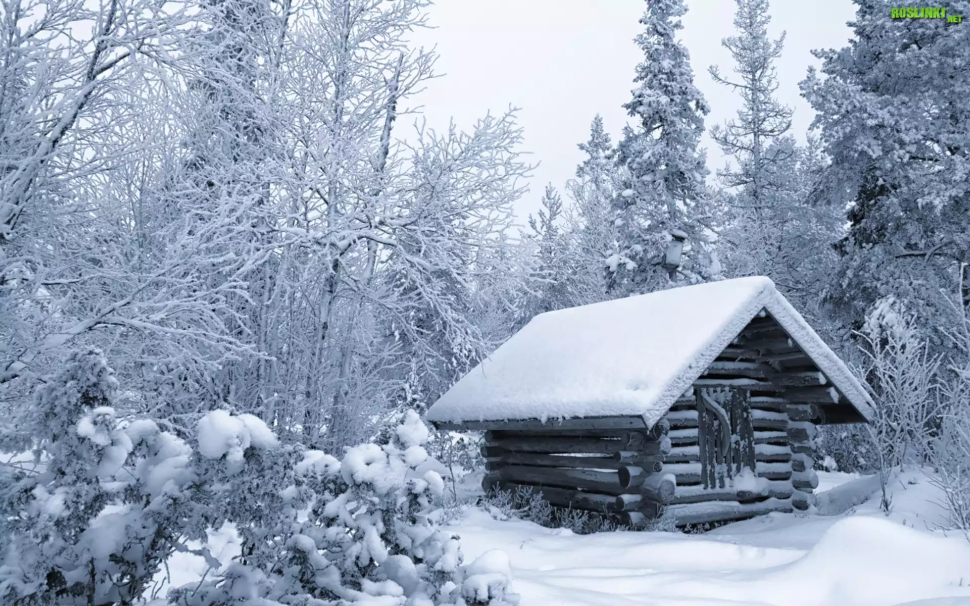Rośliny: Zima, Las, Ośnieżone, Drzewa, Drewniana, Chata