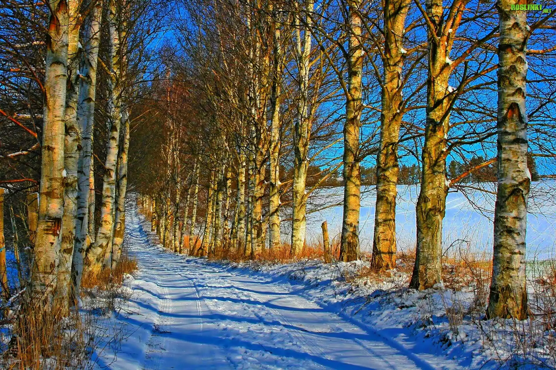 Rośliny: Zima, Śnieg, Droga, Brzozy