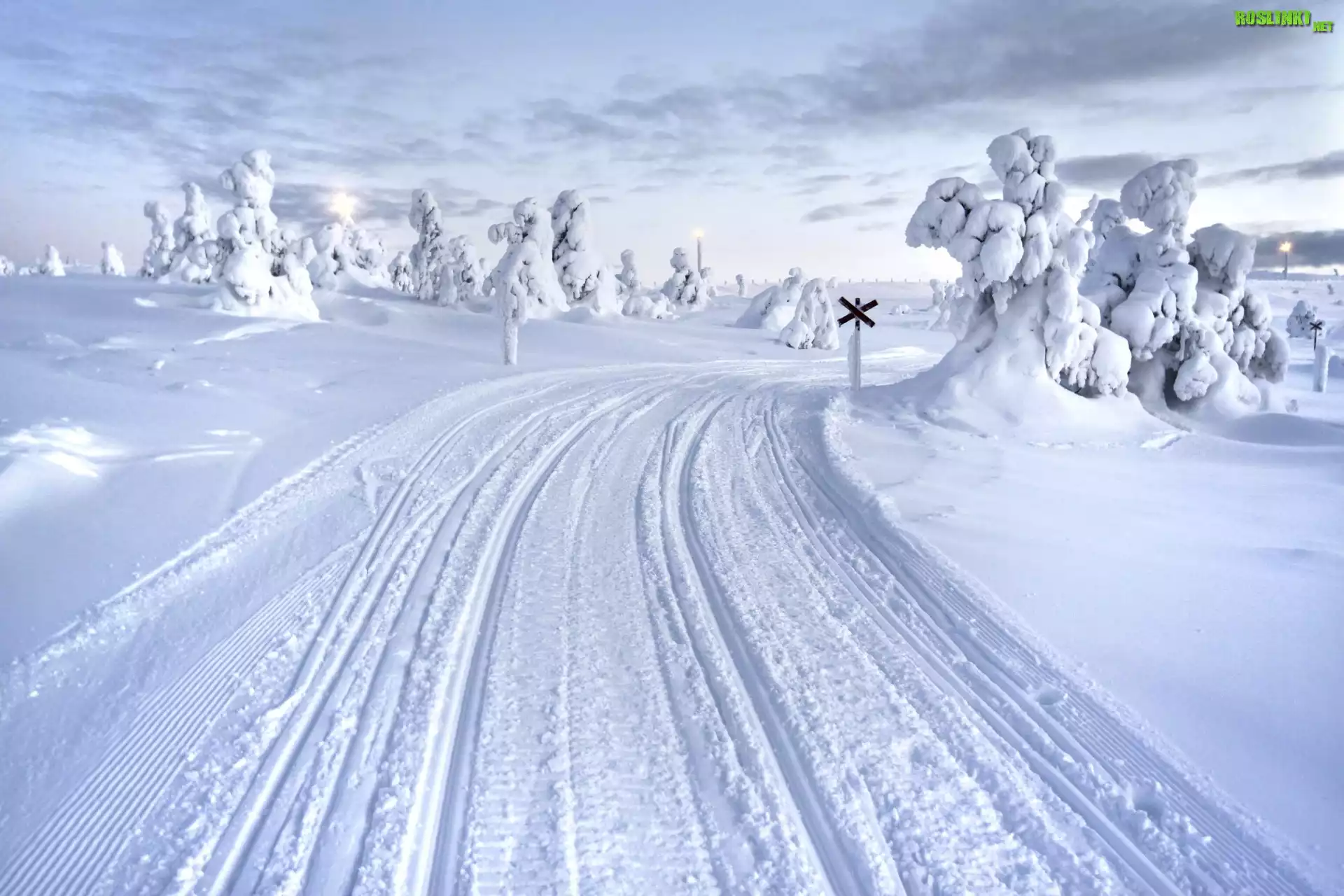 Rośliny: Zima, Śnieg, Droga, Drzewa