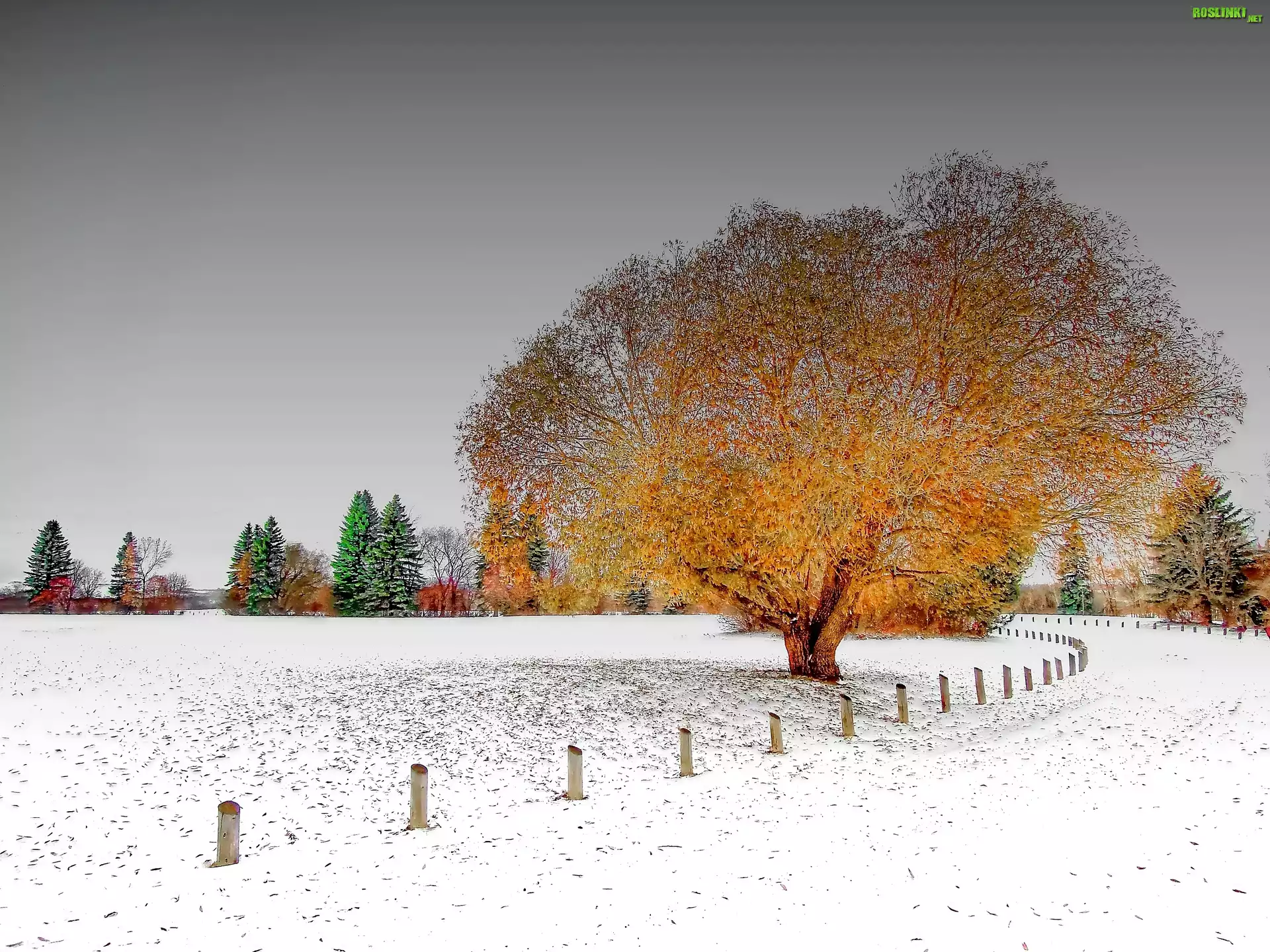 Rośliny: Zima, Ośnieżona, Droga, Drzewo