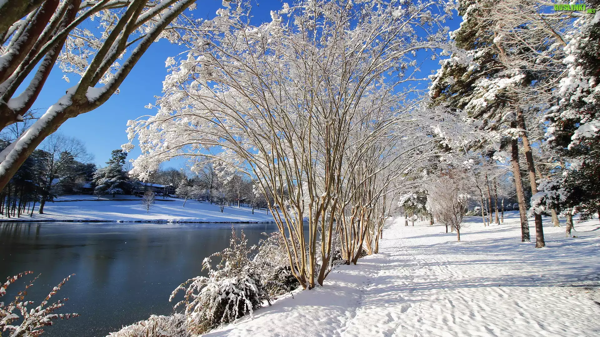 Rośliny: Zima, Śnieg, Ośnieżone, Drzewa, Droga, Rzeka
