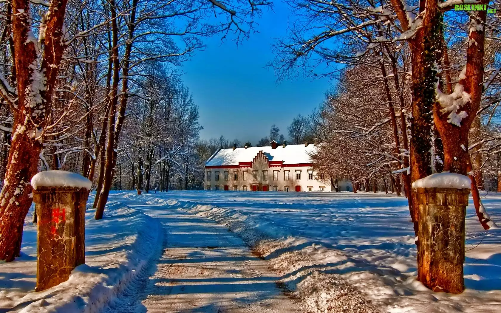 Rośliny: Zima, Śnieg, Dom, Drzewa, Droga