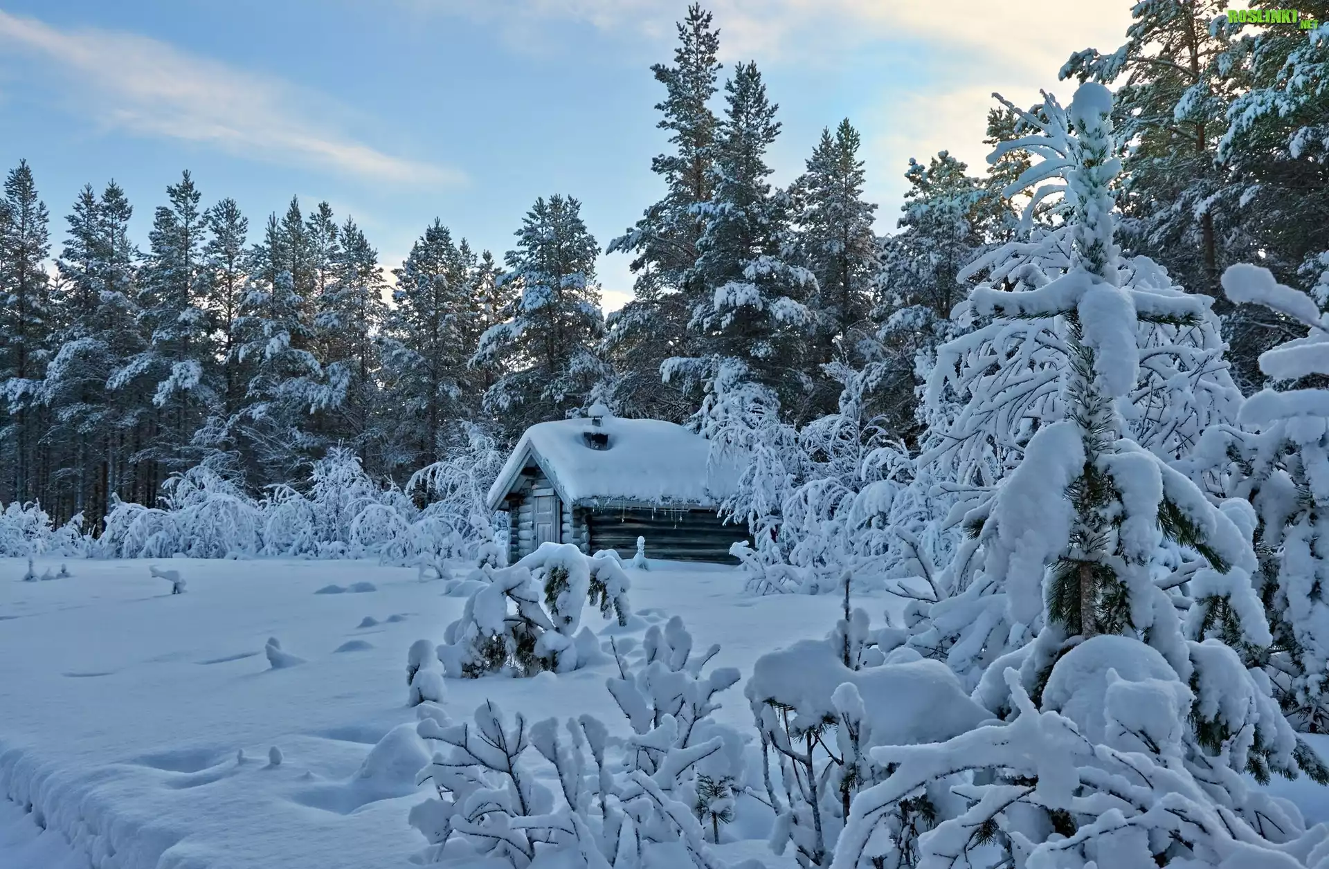 Rośliny: Zima, Śnieg, Dom, Drzewa, Las