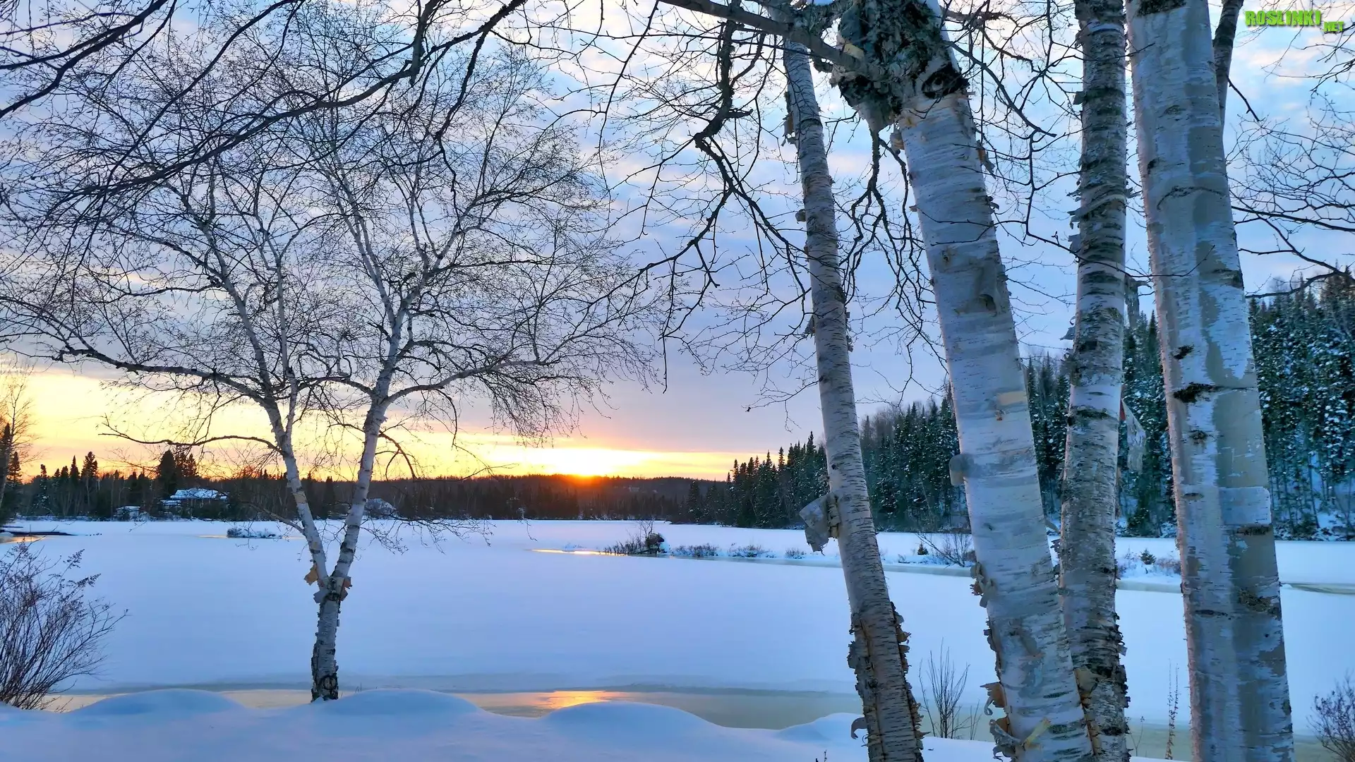Rośliny: Zima, Zaśnieżone, Jezioro, Las, Drzewa, Brzozy