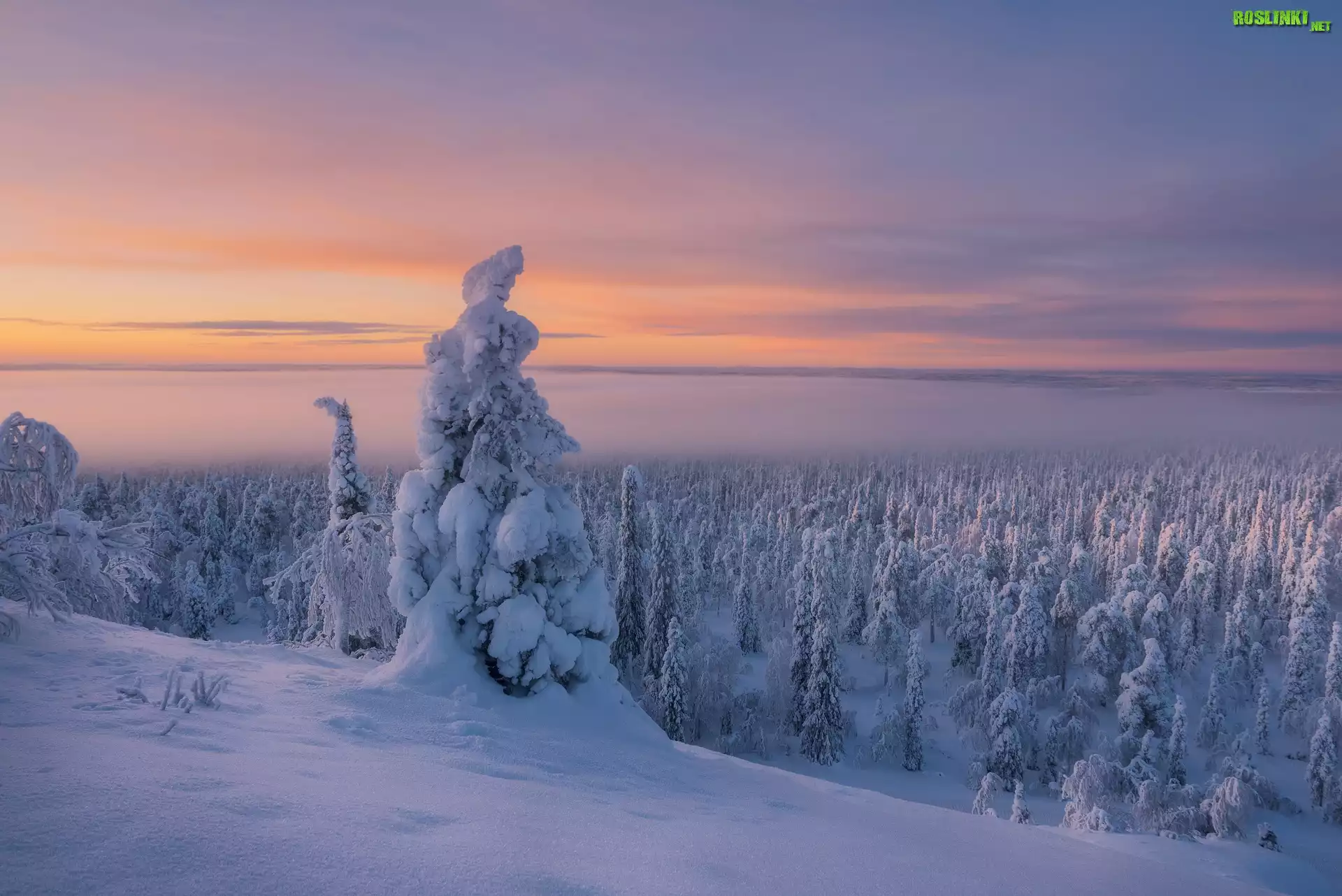 Rośliny: Zima, Finlandia, Laponia, Ośnieżone, Drzewa, Mgła