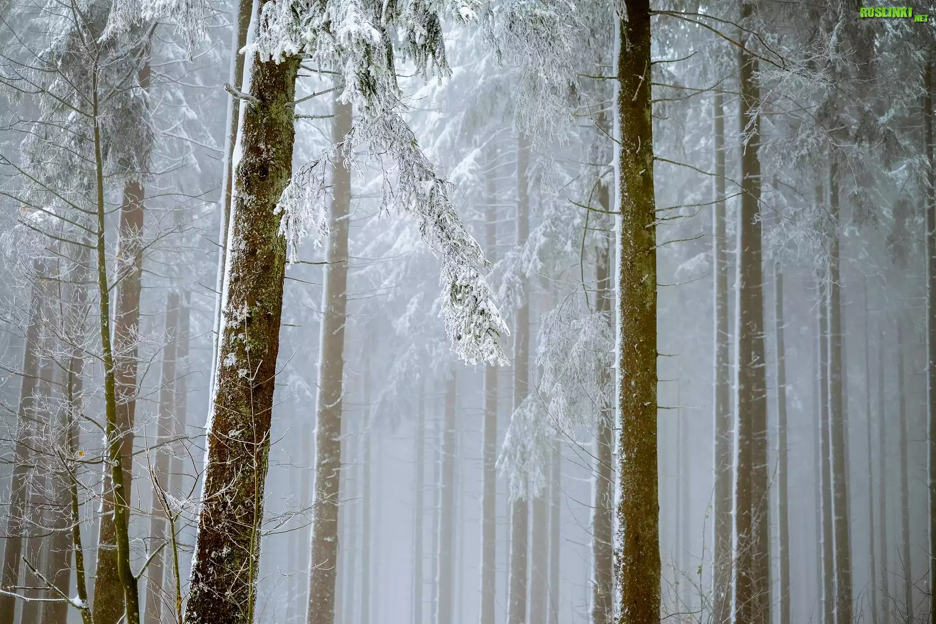 Rośliny: Zima, Las, Drzewa, Mgła