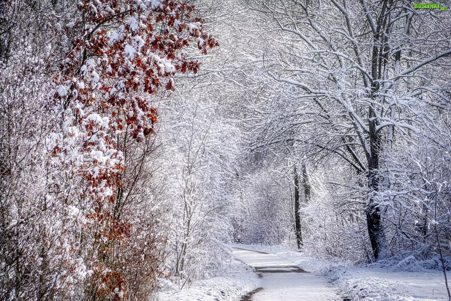 Rośliny: Zima, Śnieg, Las, Drzewa, Droga