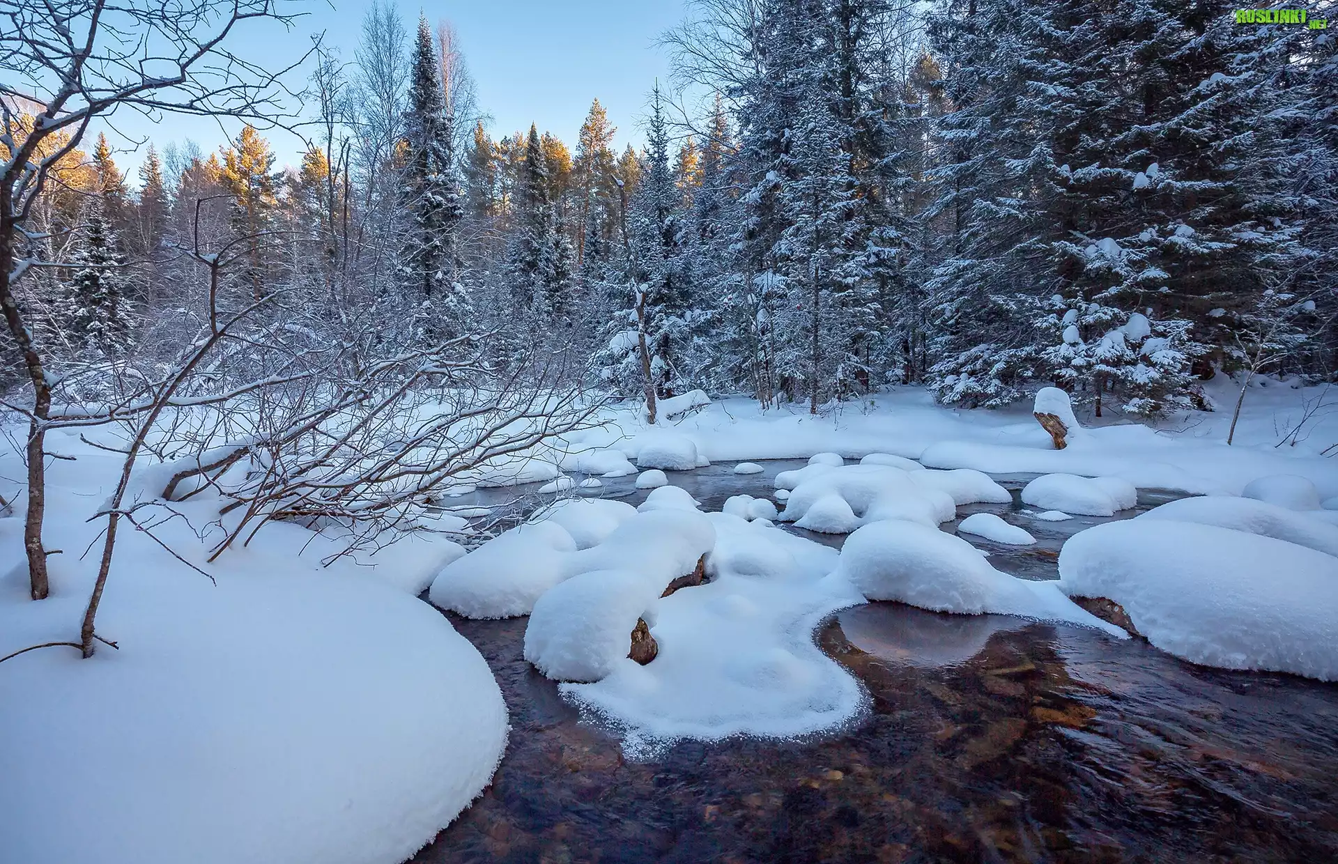 Rośliny: Zima, Zaśnieżony, Las, Drzewa, Rzeka