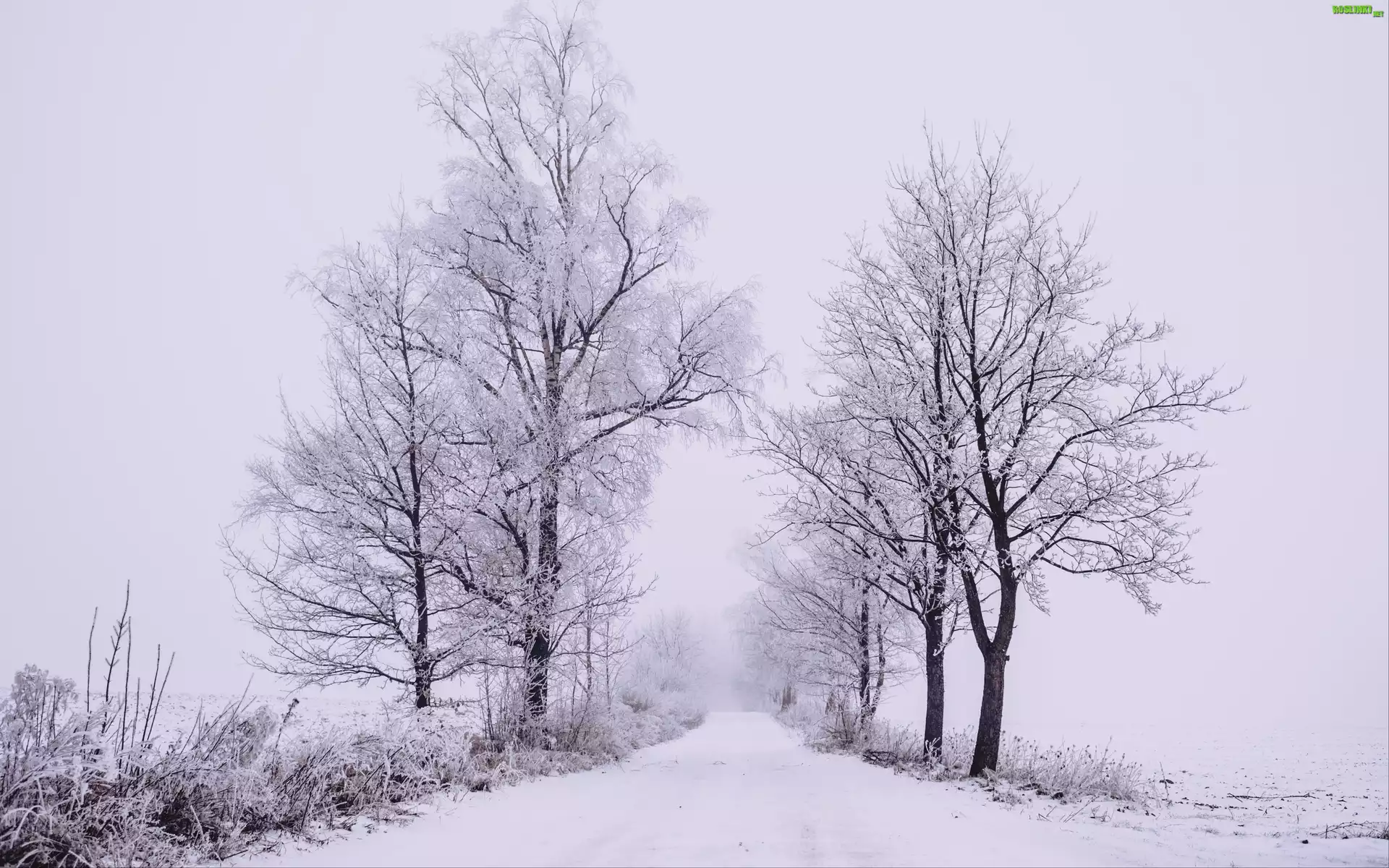 Rośliny: Zima, Śnieg, Drzewa, Droga
