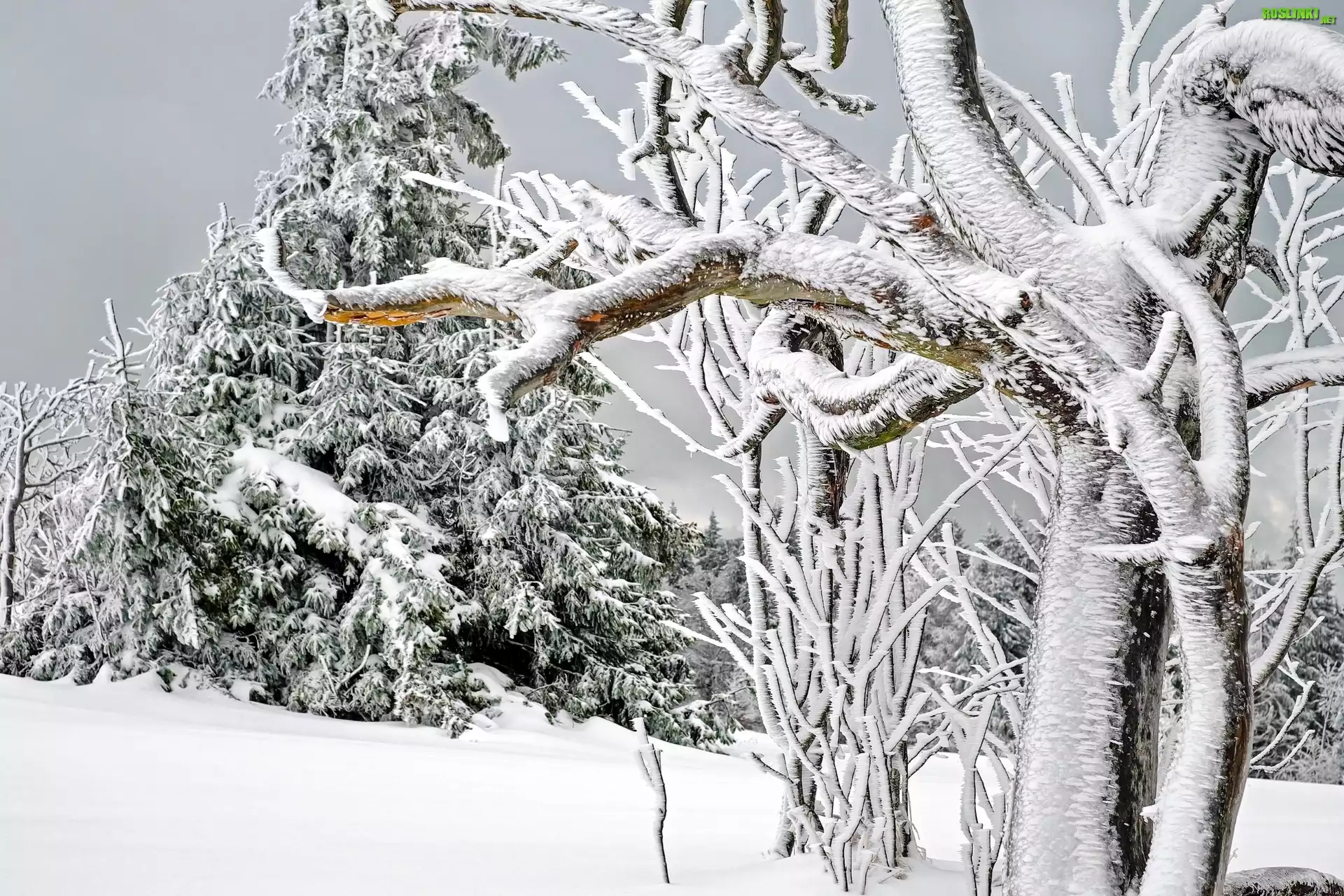 Rośliny: Zima, Śnieg, Drzewa, Gałęzie