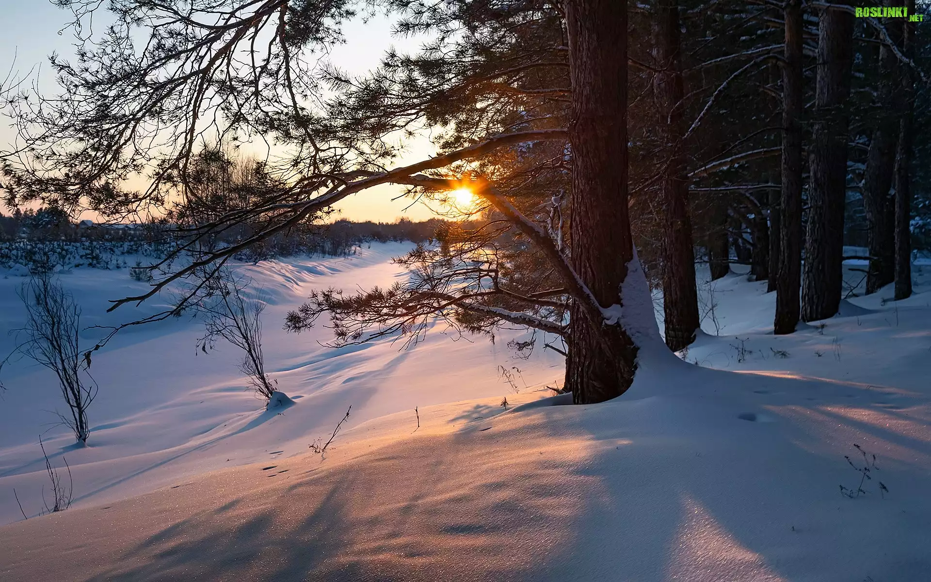 Rośliny: Zima, Śnieg, Drzewa, Poranek