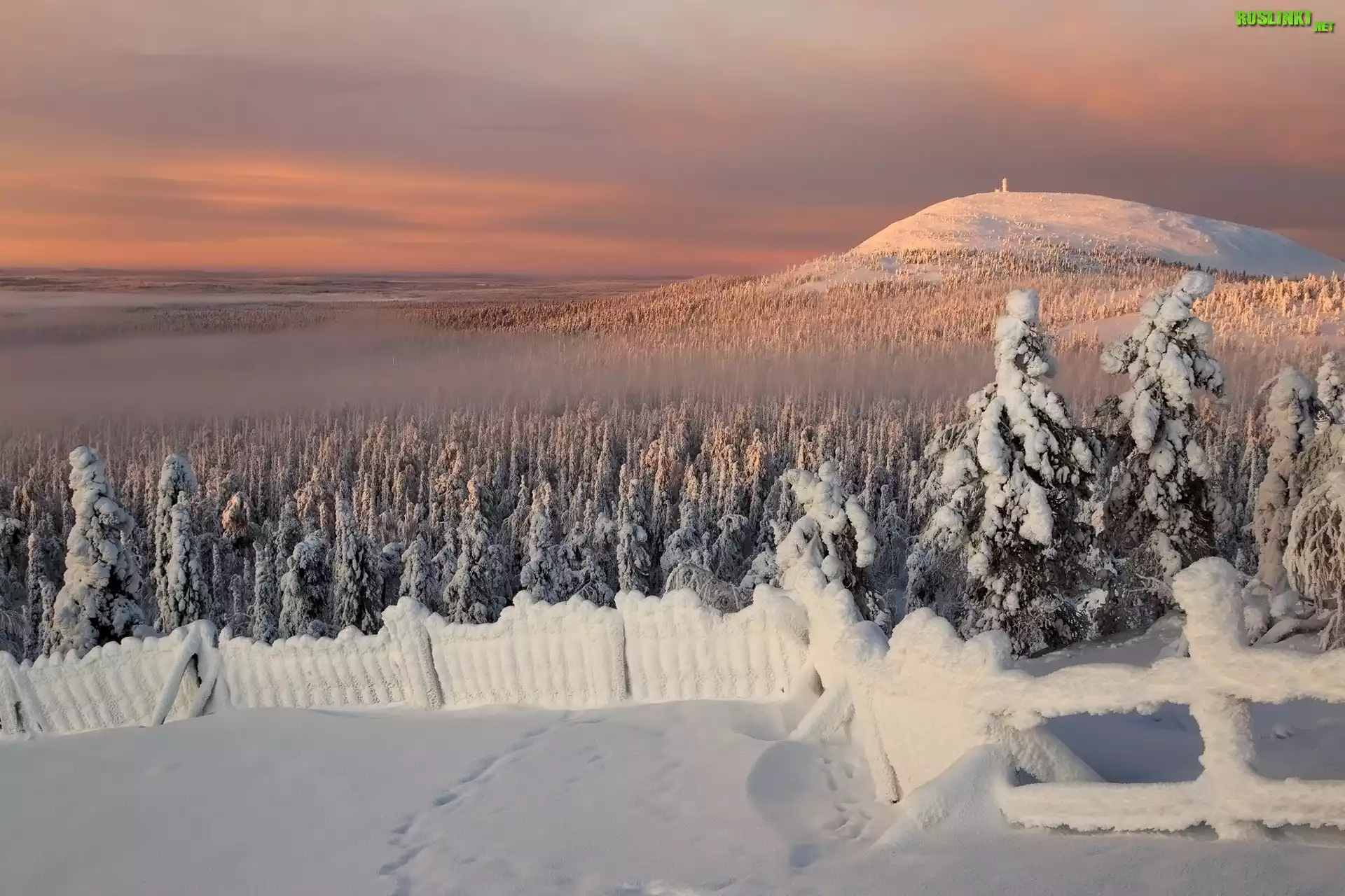 Rośliny: Zima, Góry, Ośnieżone, Drzewa, Ogrodzenie