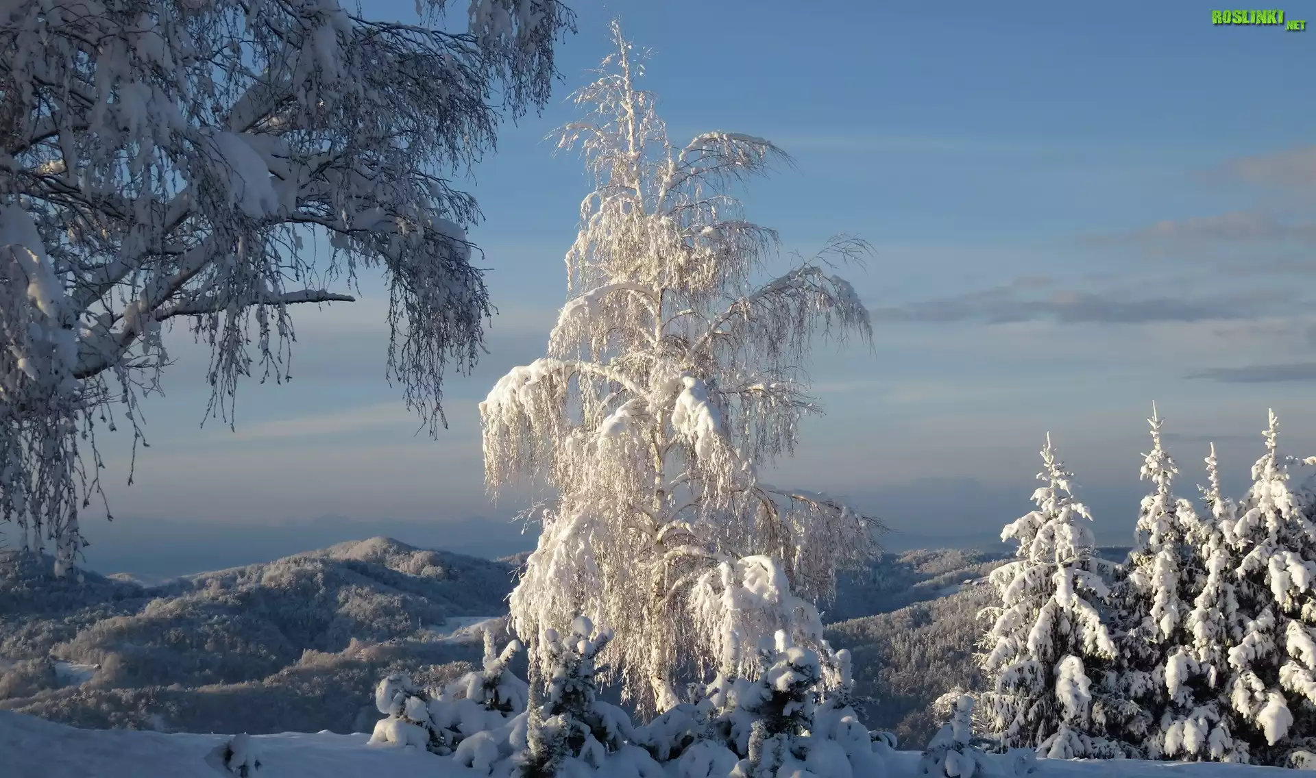 Rośliny: Zima, Ośnieżone, Drzewa, Góry
