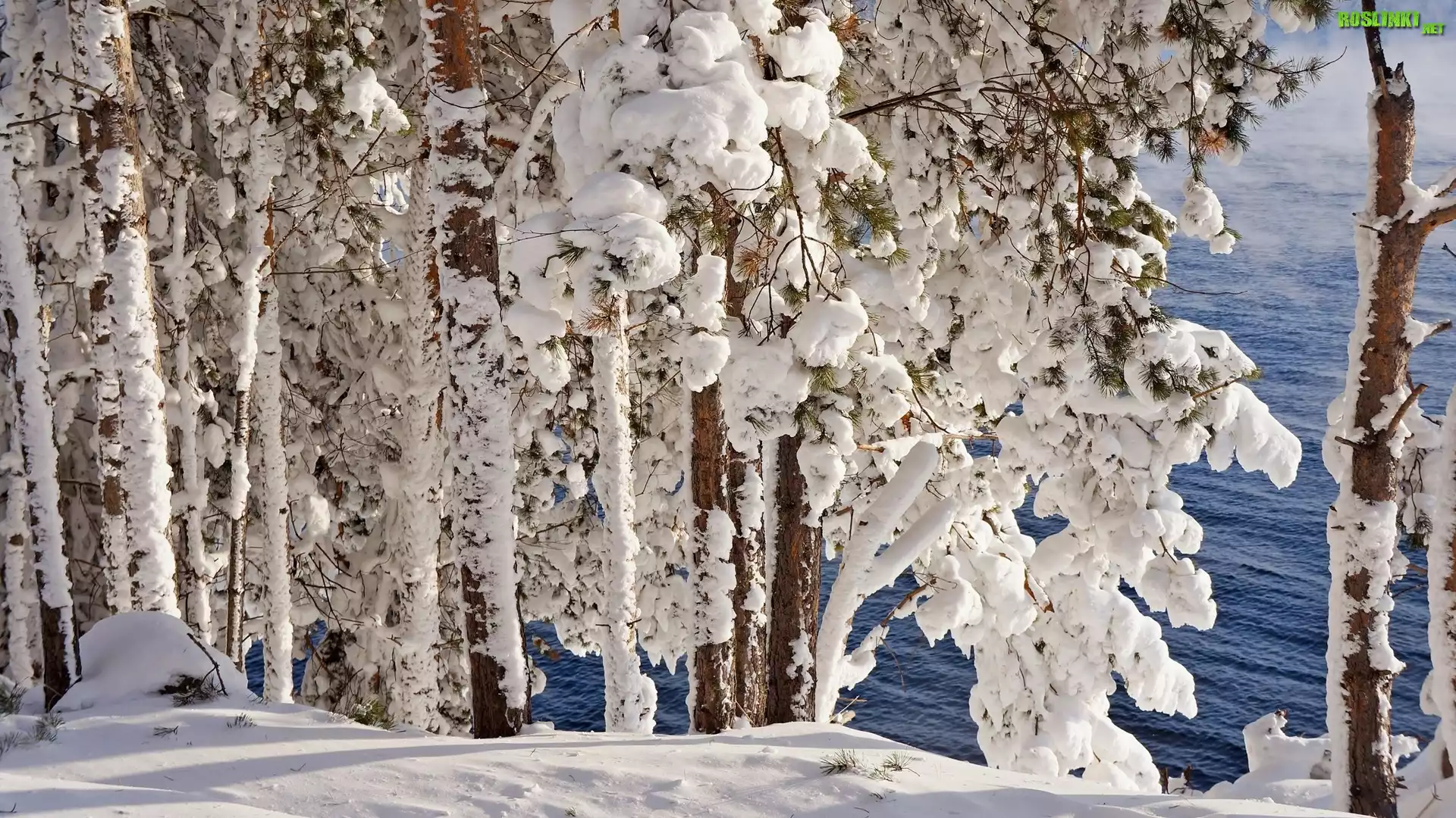 Rośliny: Zima, Ośnieżone, Drzewa, Woda
