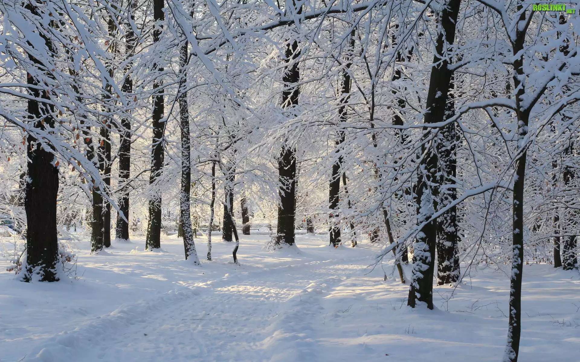 Rośliny: Zima, Śnieg, Park, Drzewa, Ścieżka