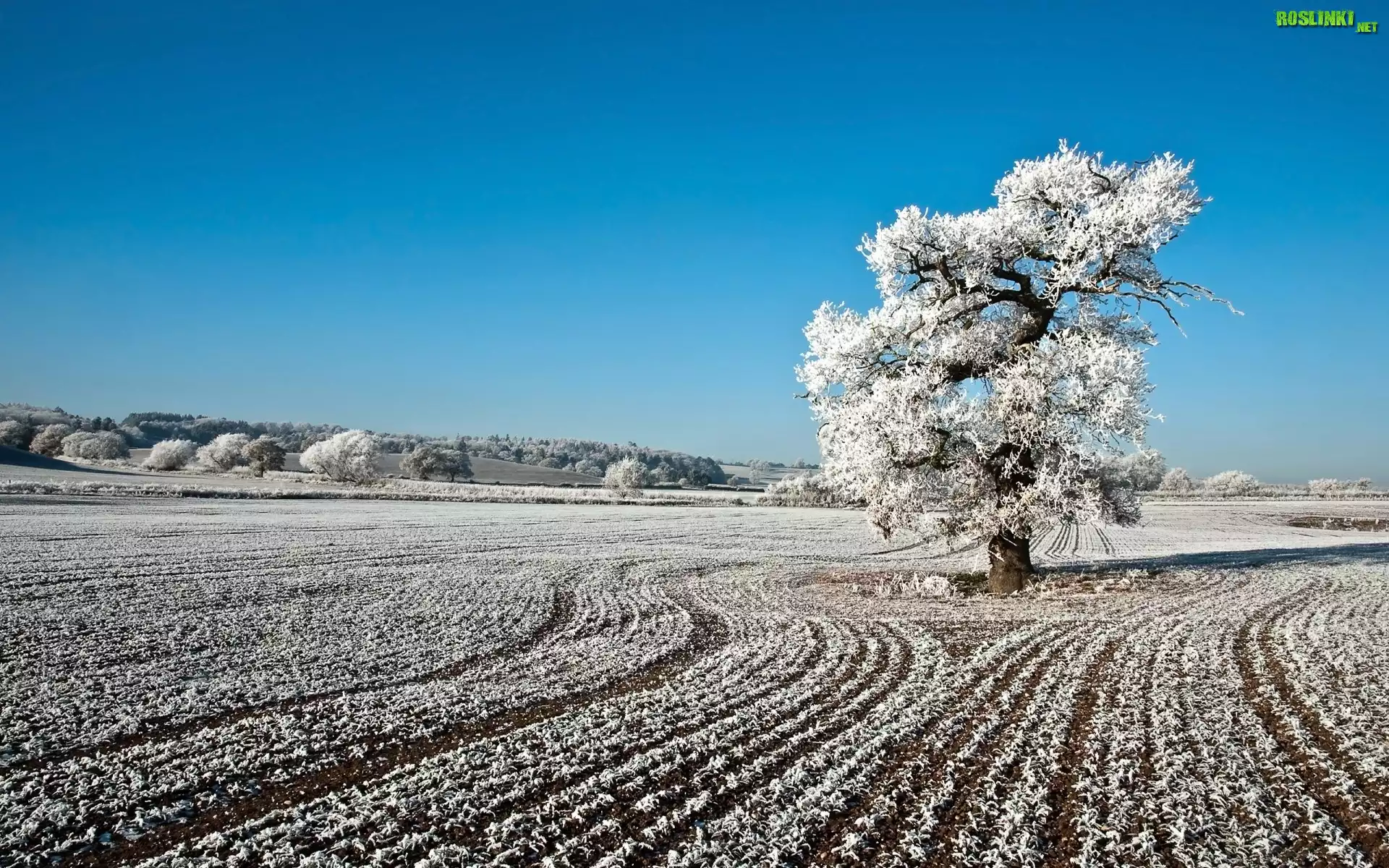 Rośliny: Zima, Pola, Drzewa, Niebo