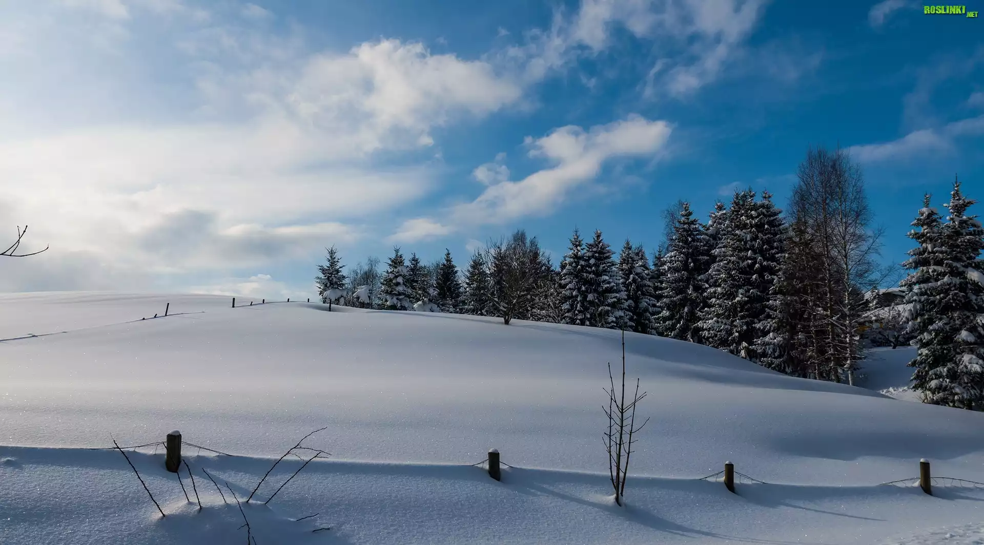 Rośliny: Zima, Pole, Drzewa, Śnieg
