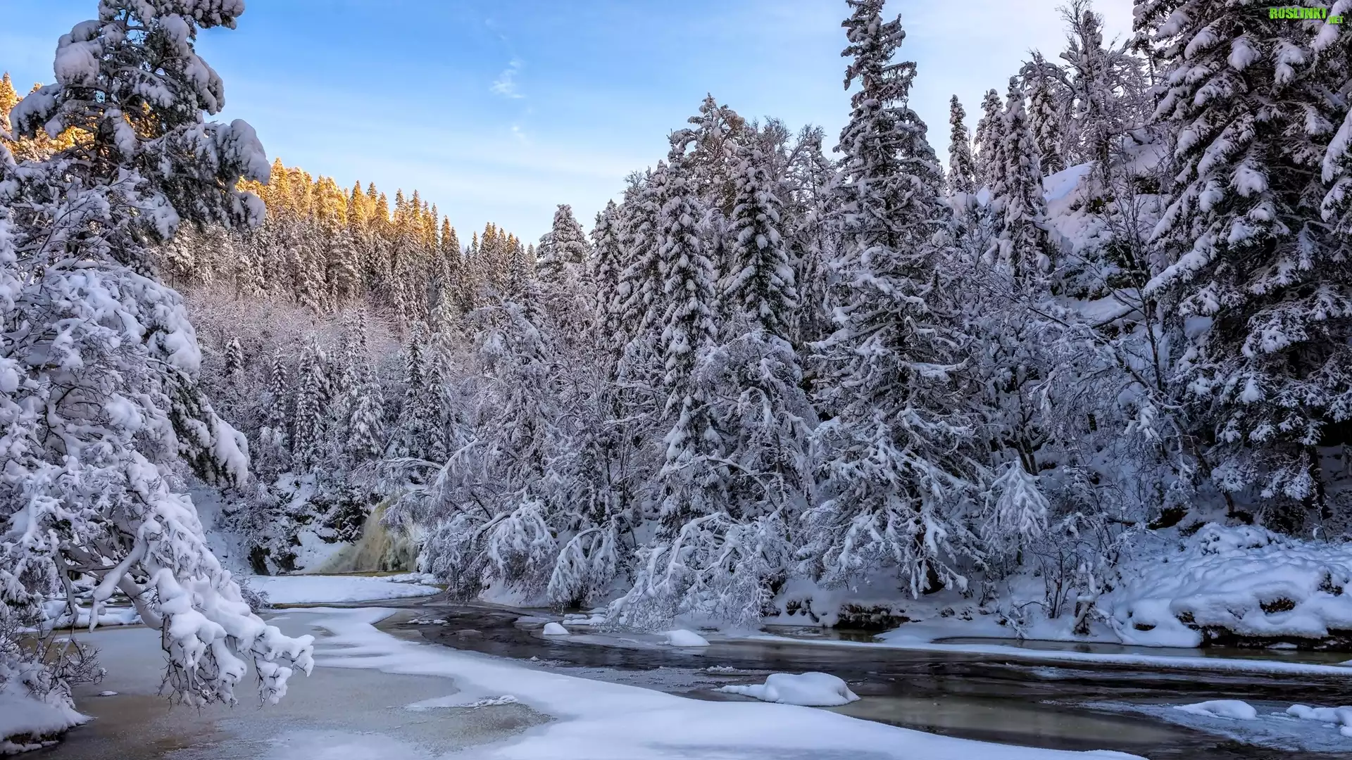 Rośliny: Zima, Rzeka, Drzewa, Śnieg