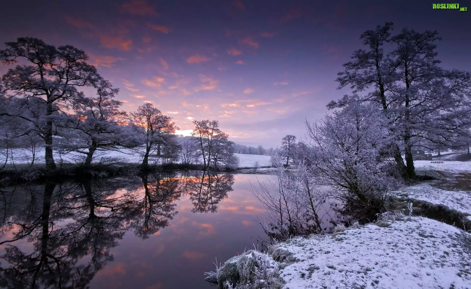 Rośliny: Zima, Rzeka, Drzewa, Odbicie