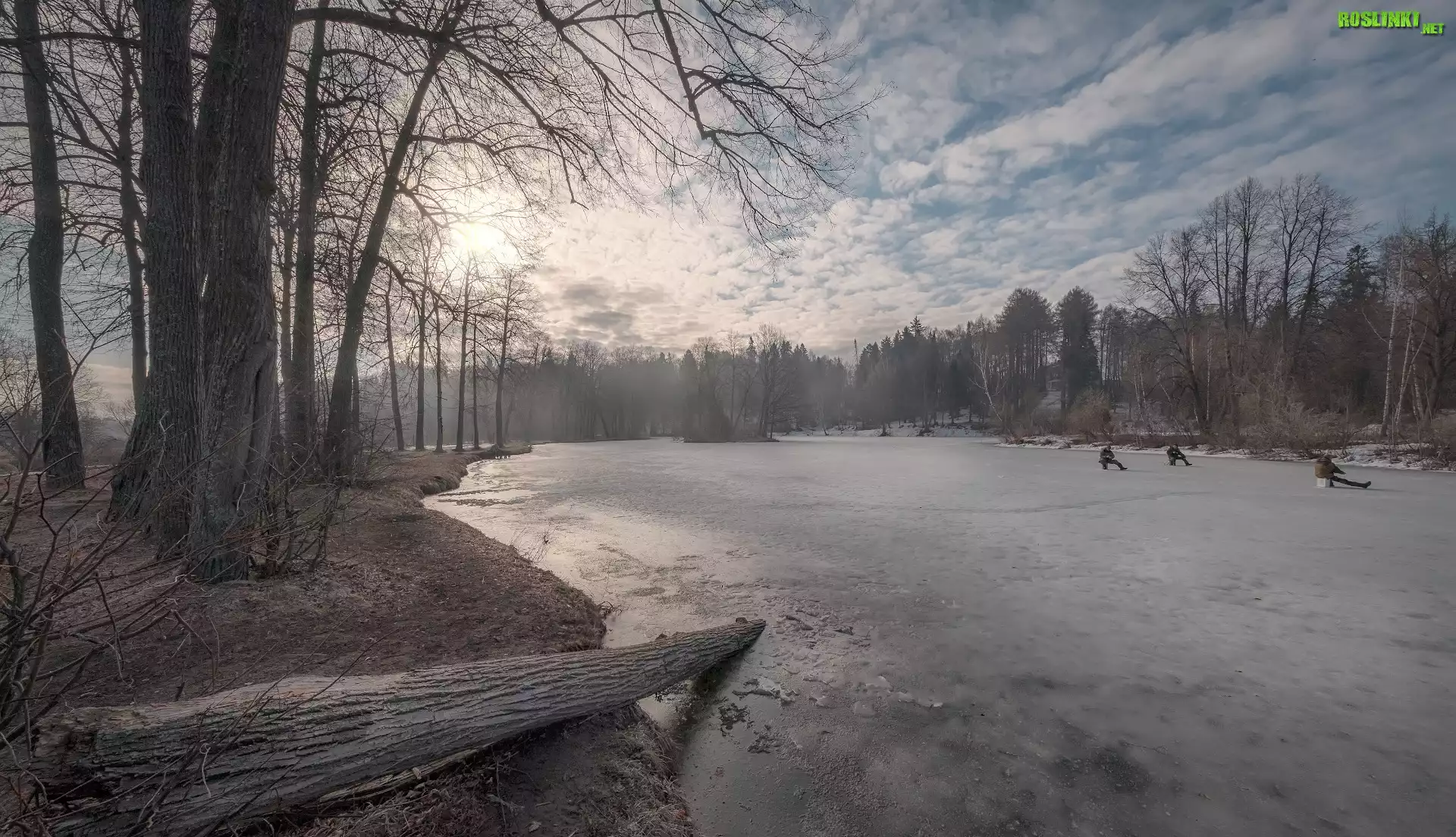 Rośliny: Zima, Drzewa, Wędkarze, Staw Barski, Serednikowo, Obwód moskiewski, Rosja