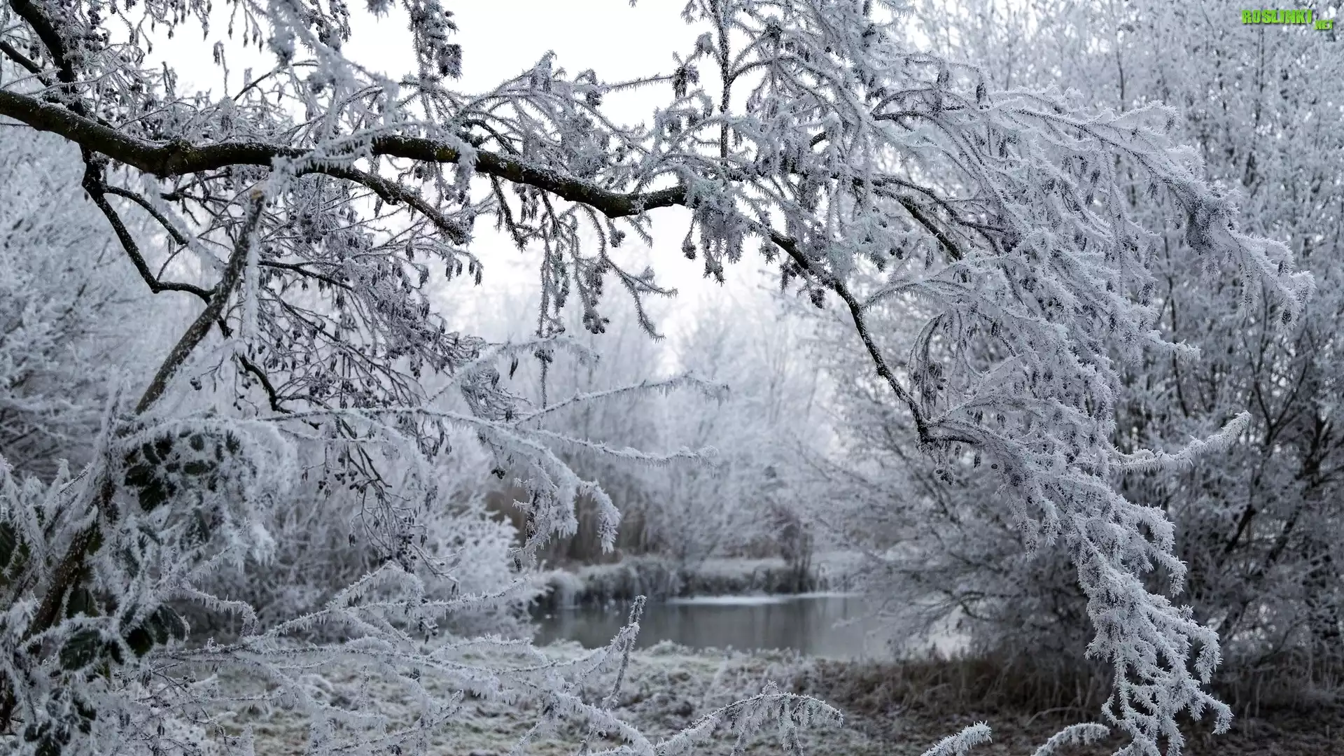 Rośliny: Zima, Las, Staw, Oszronione, Drzewa, Gałęzie