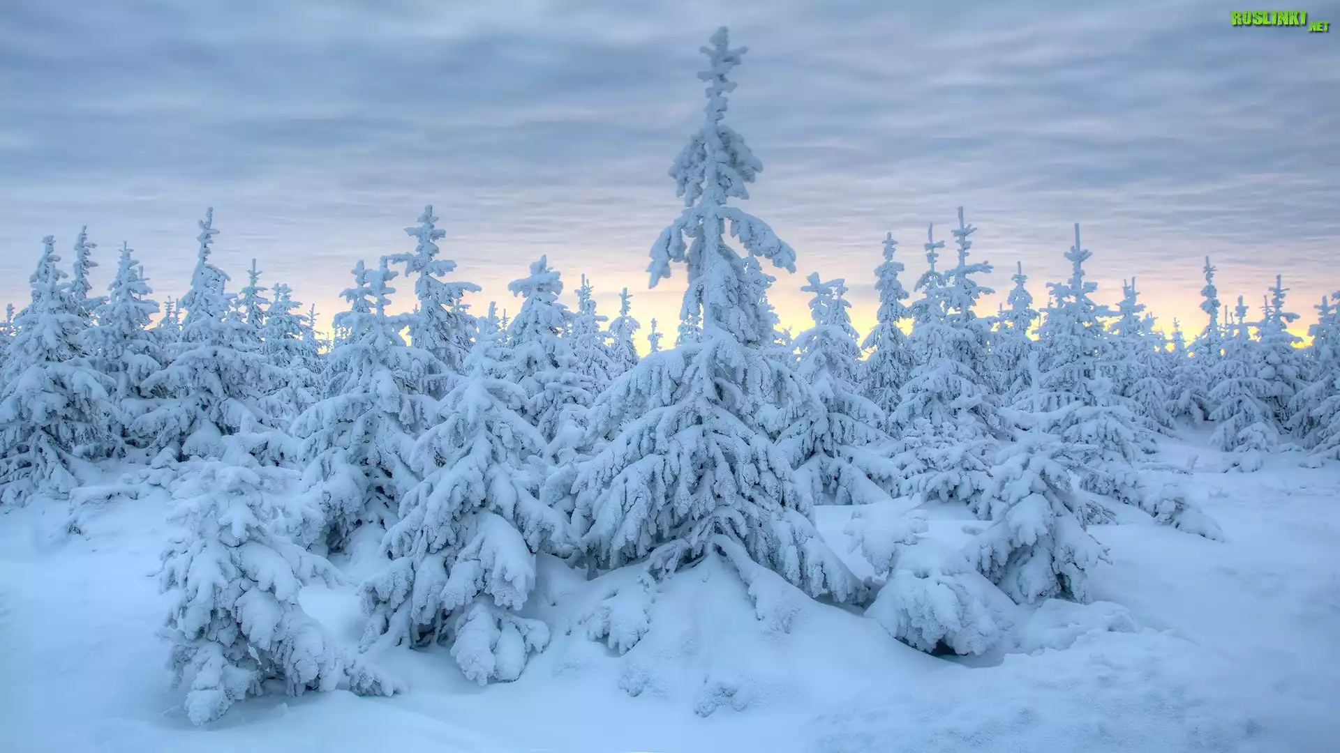 Rośliny: Zima, Śnieg, Świerki, Ośnieżone, Drzewa, Chmury