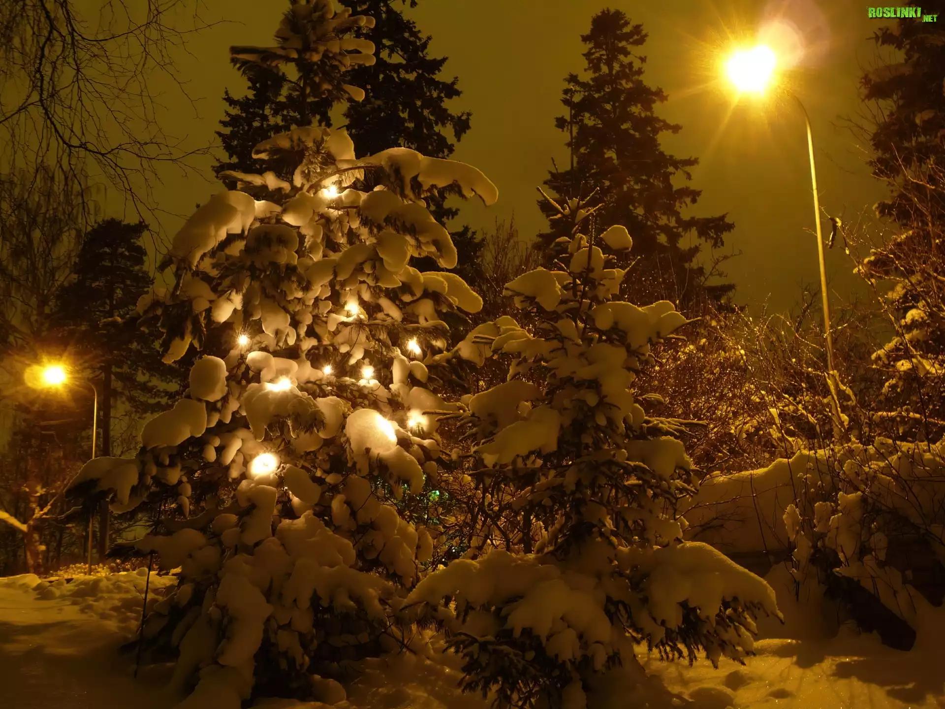 Rośliny: Zima, Oświetlone, Drzewko, Noc