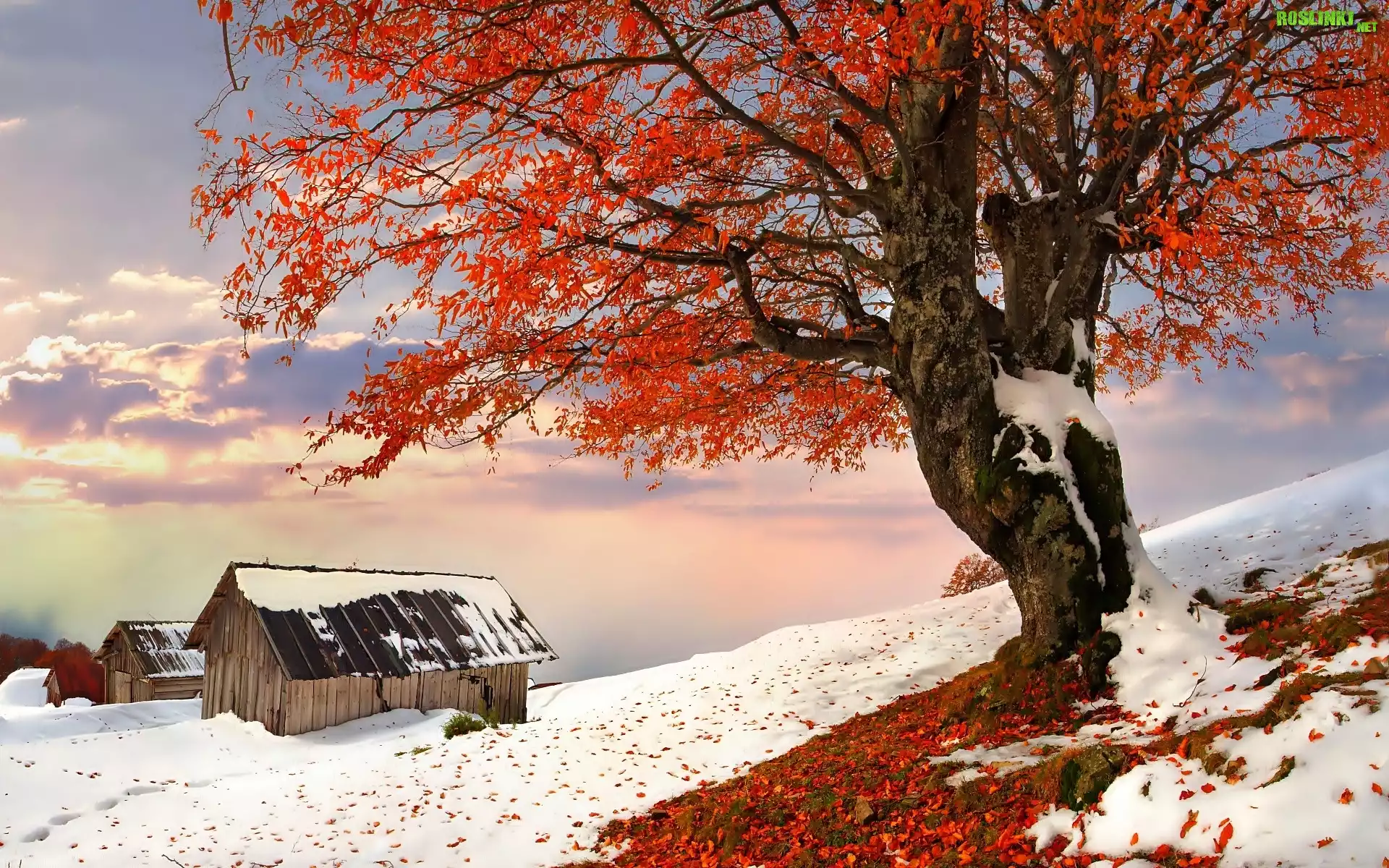 Rośliny: Zima, Śnieg, Drzewo, Domki