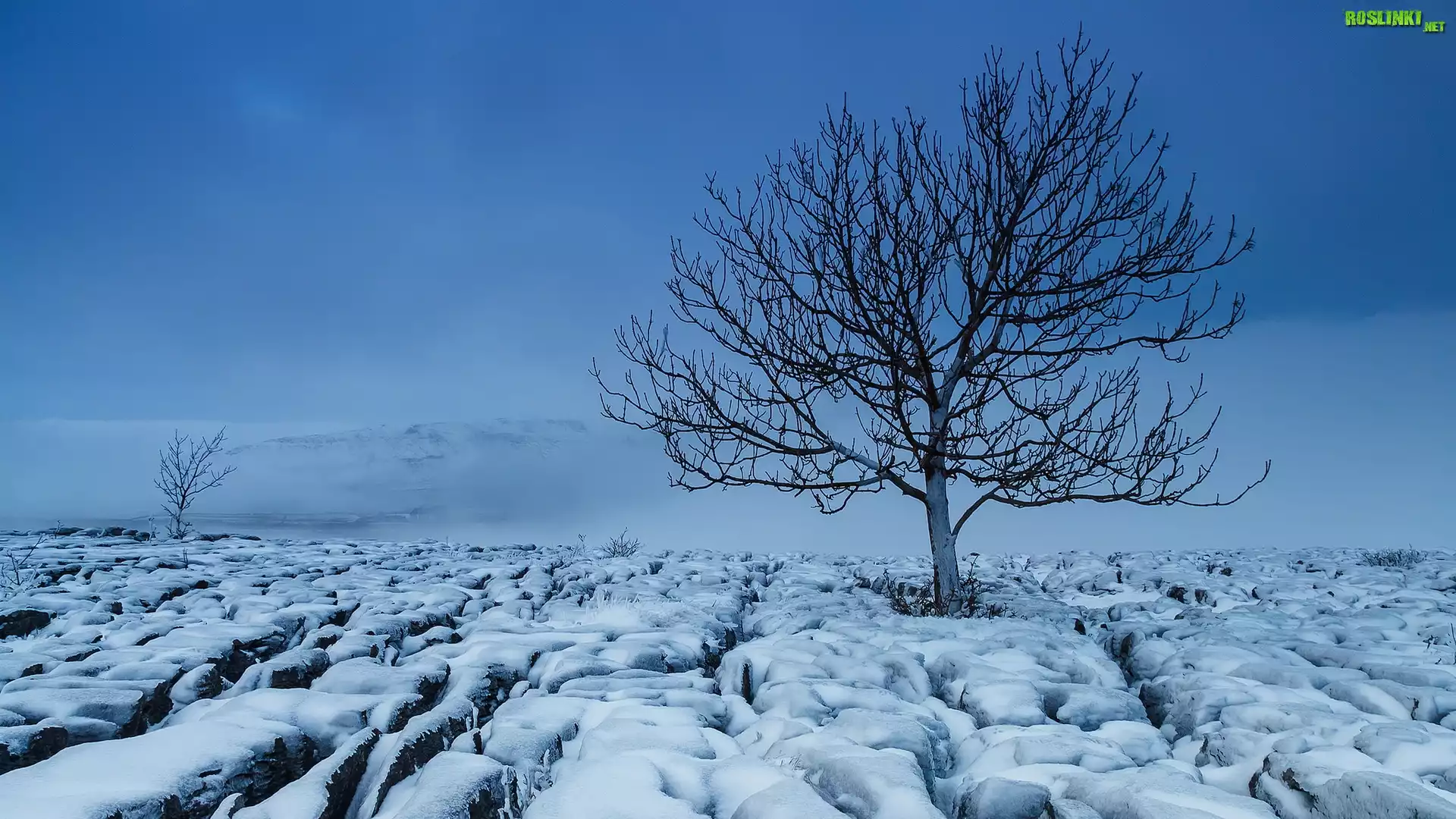 Rośliny: Zima, Śnieg, Drzewo, Mgła