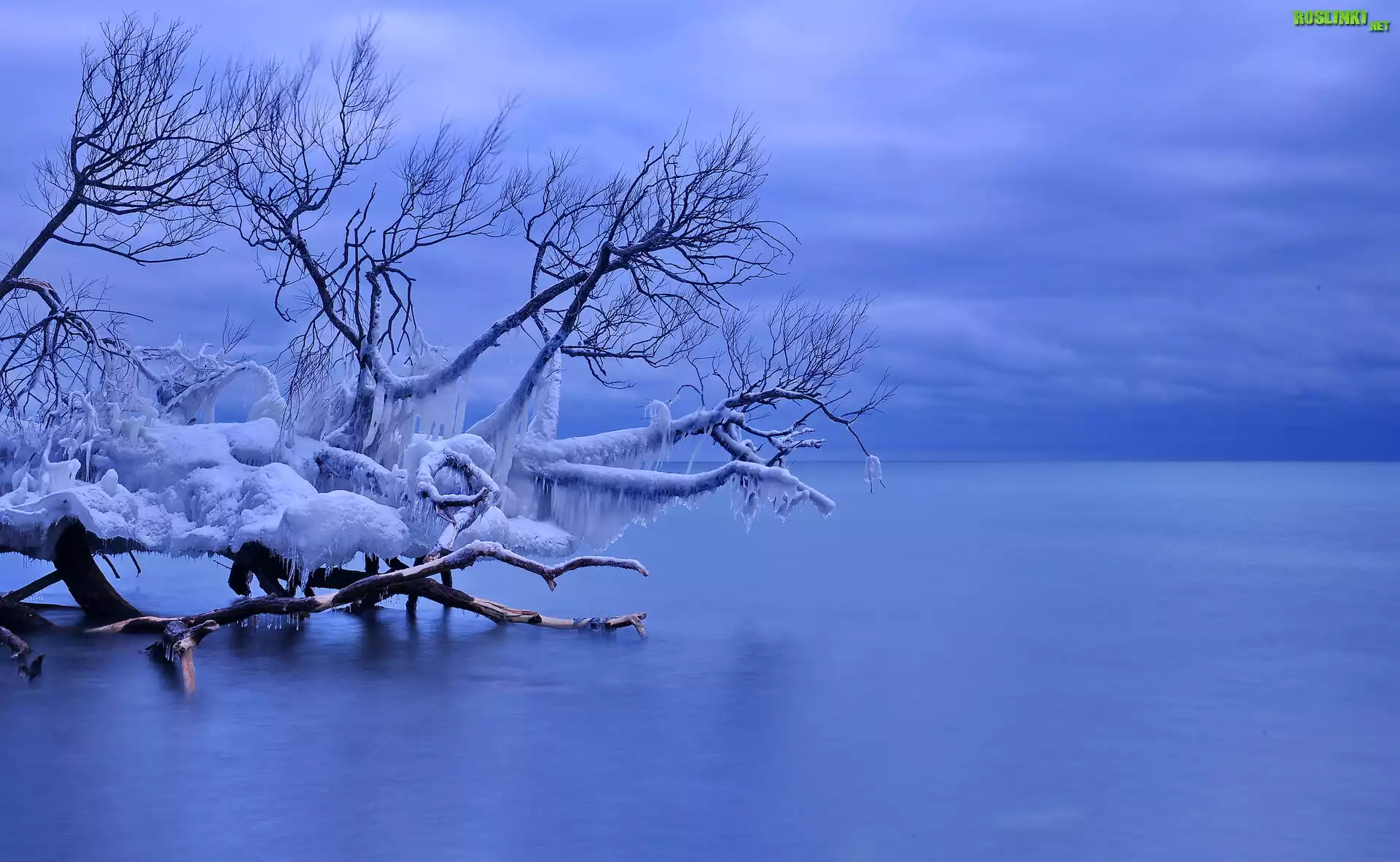 Rośliny: Zima, Oblodzone, Drzewo, Morze