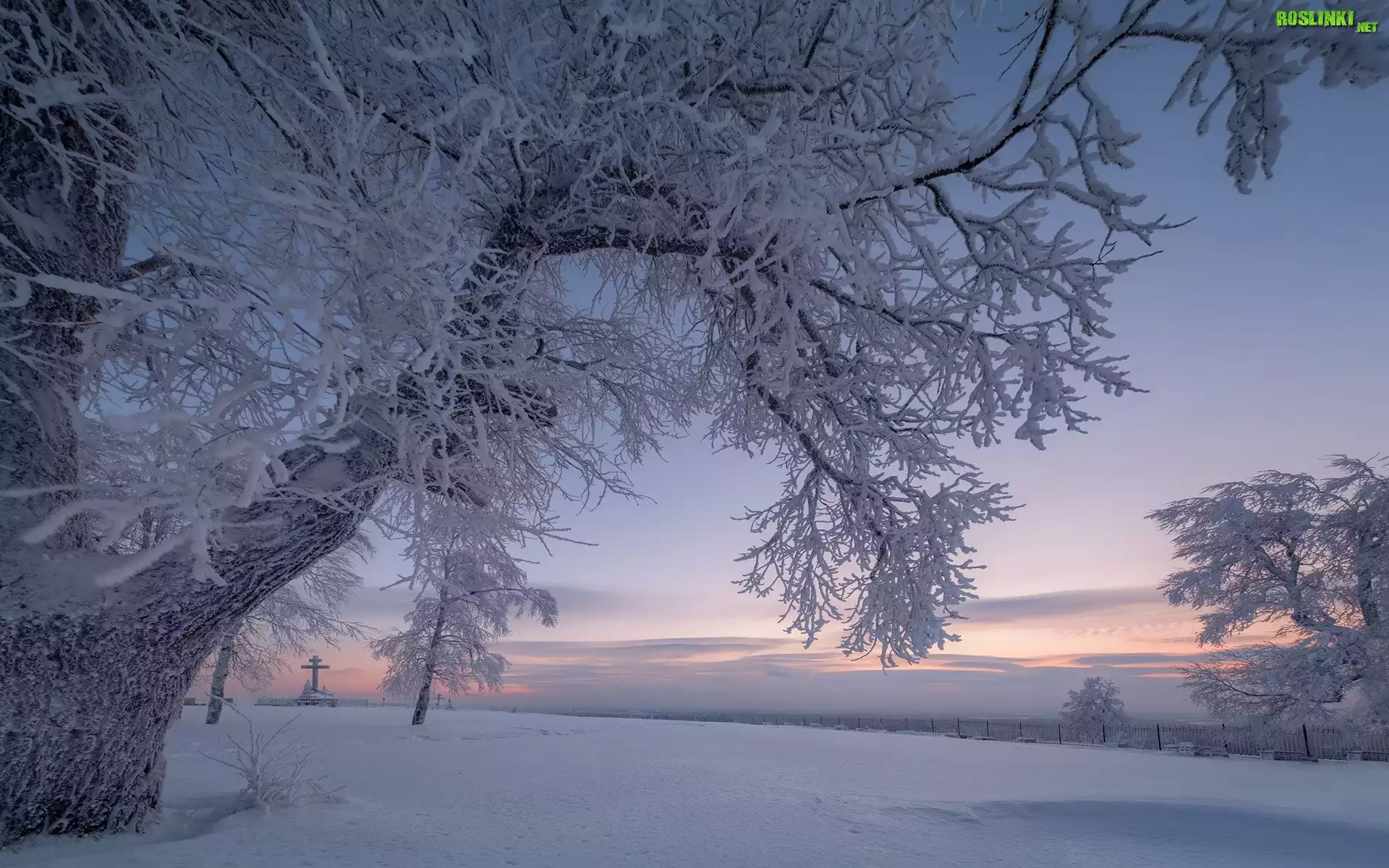 Rośliny: Zima, Śnieg, Ośnieżone, Drzewa, Gałęzie, Niebo