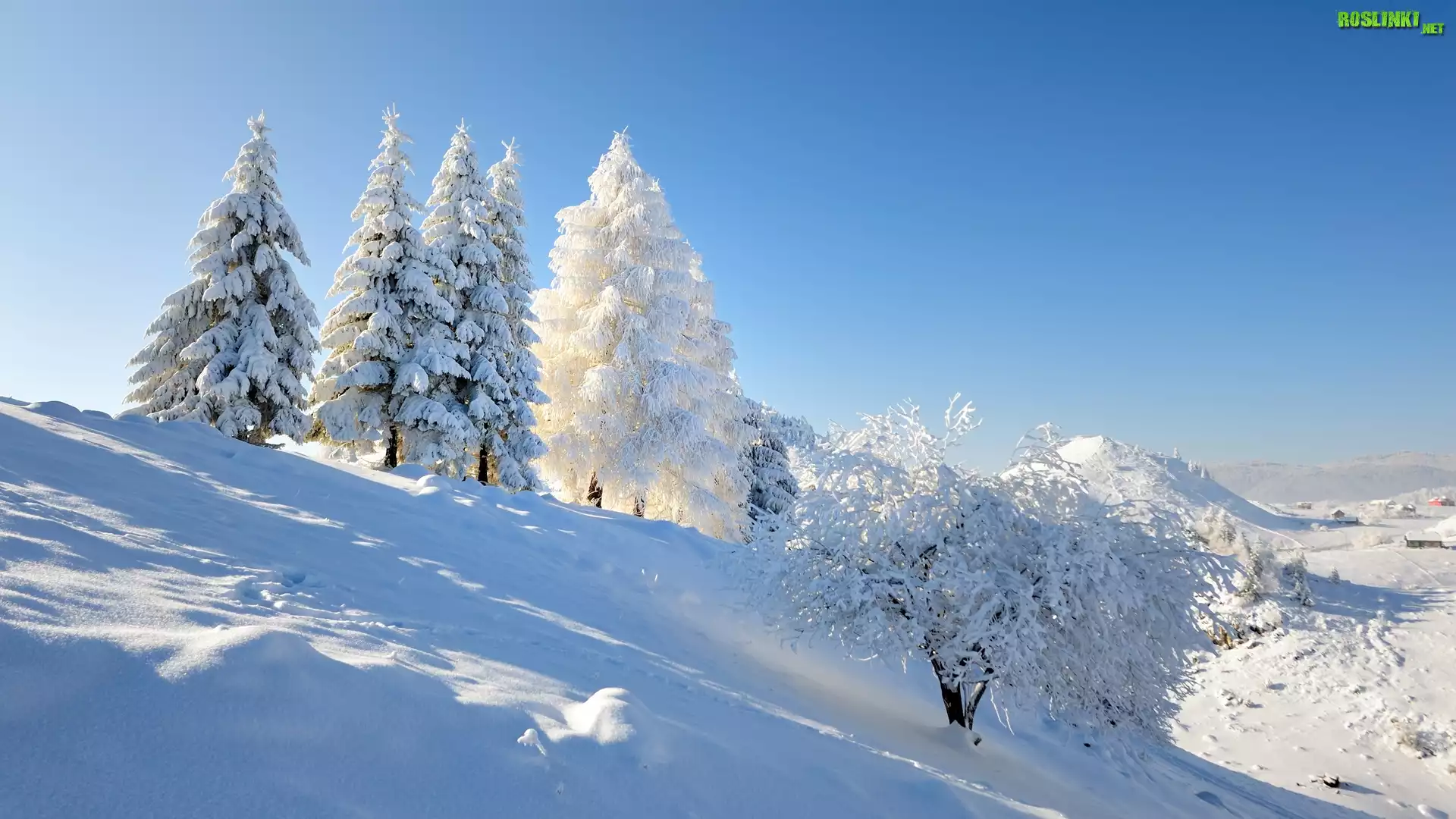 Rośliny: Zima, Ośnieżone, Drzewa, Góry, Wzgórza