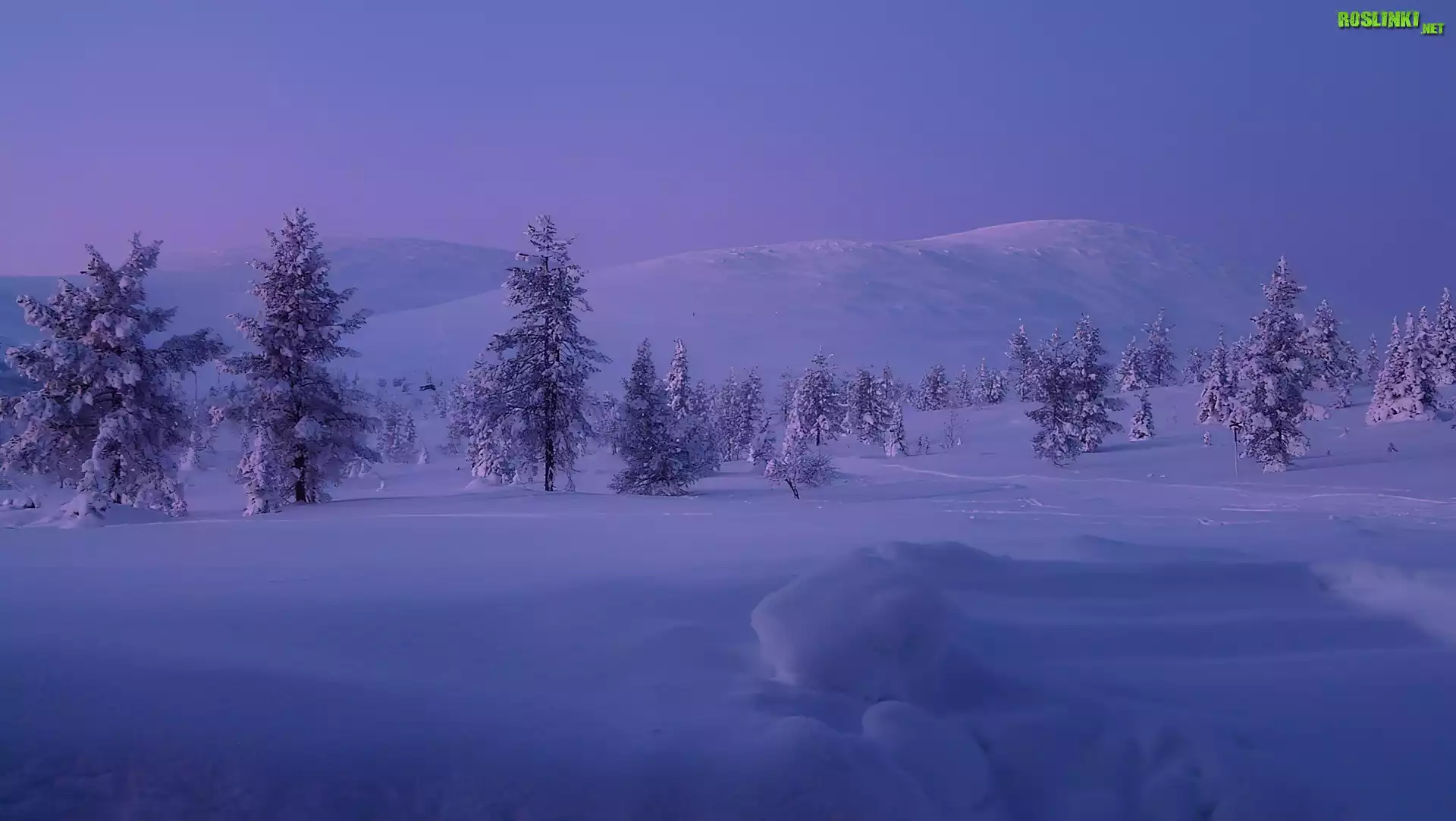 Rośliny: Zima, Drzewa, Góry, Wieczór
