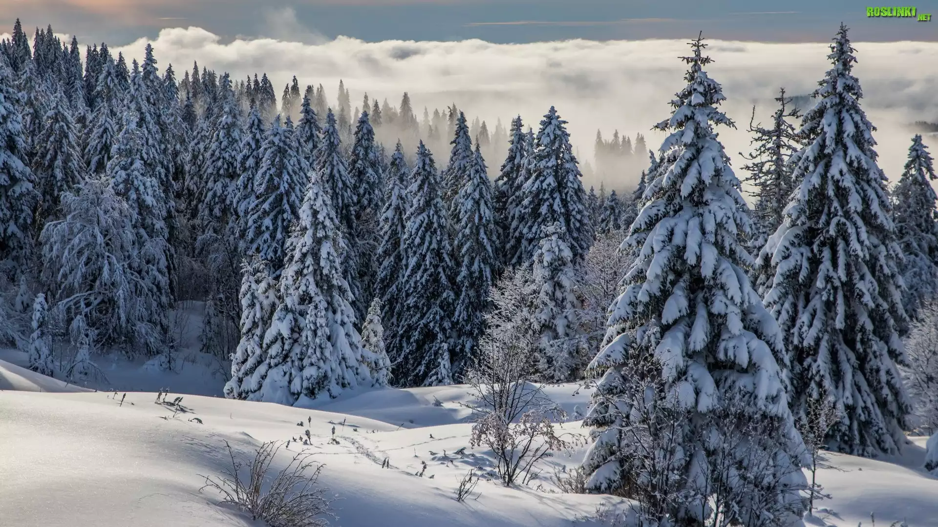 Rośliny: Zima, Las, Świerki, Góry, Mgła
