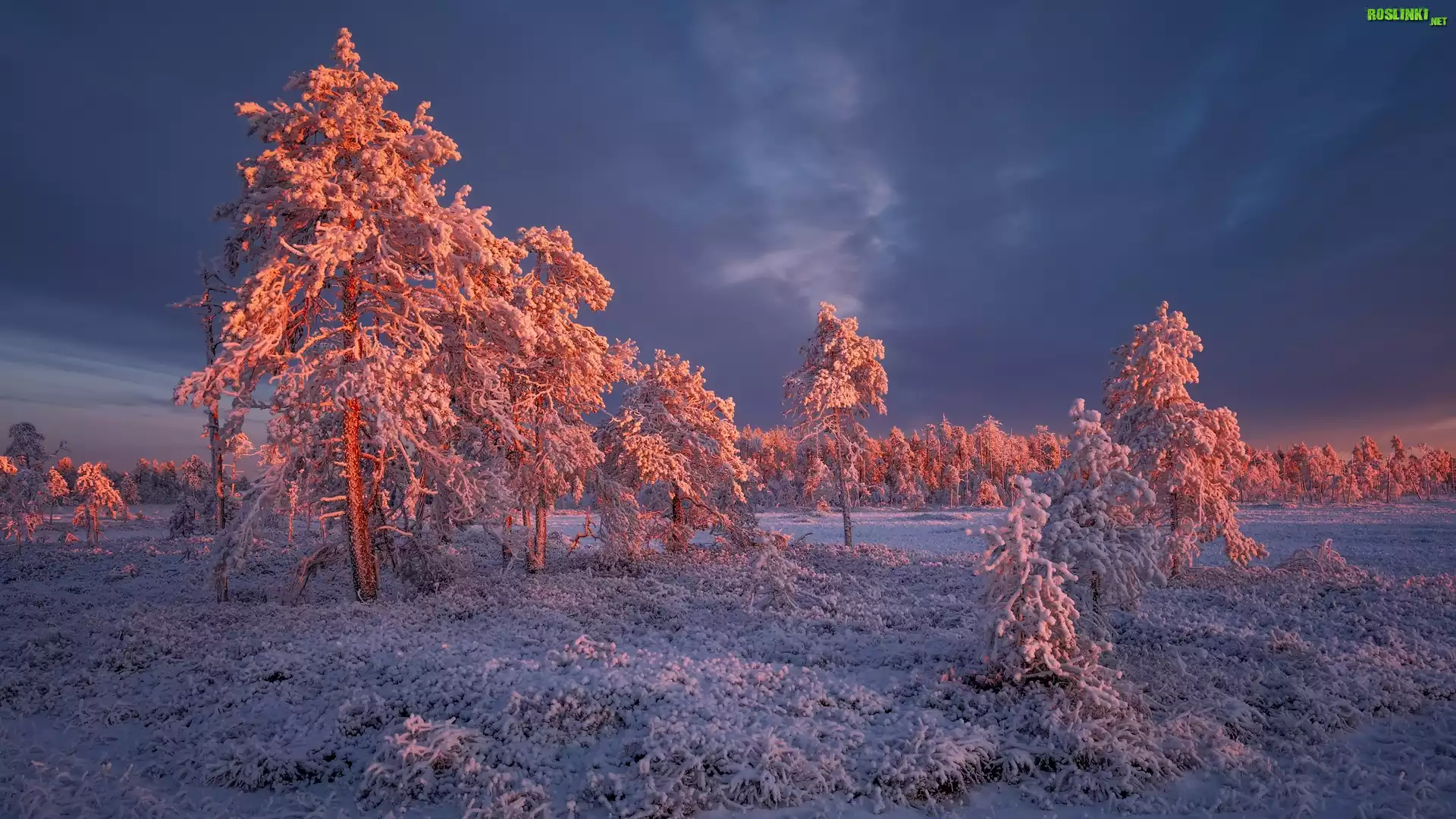 Rośliny: Rosja, Półwysep Kolski, Zima, Szron, Drzewa, Oszronione