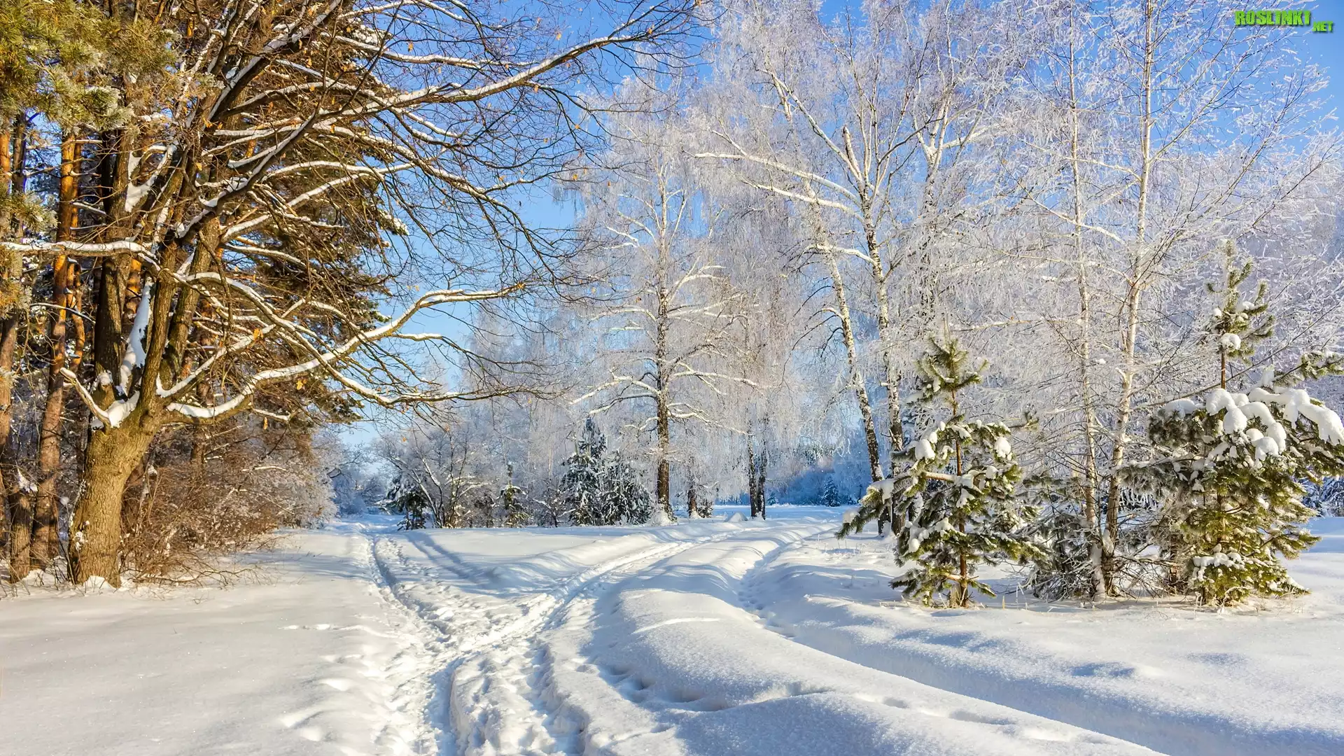 Rośliny: Zima, Droga, Ślady, Drzewa