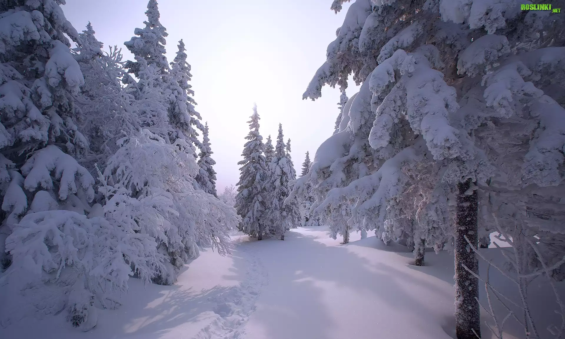 Rośliny: Zima, Ośnieżone, Drzewa, Las, Ślady, Śnieg