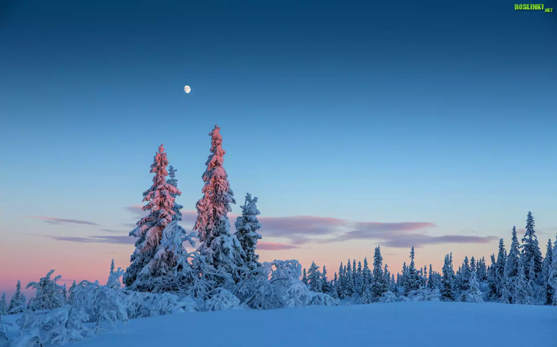 Rośliny: Zima, Śnieg, Drzewa, Las, Niebo