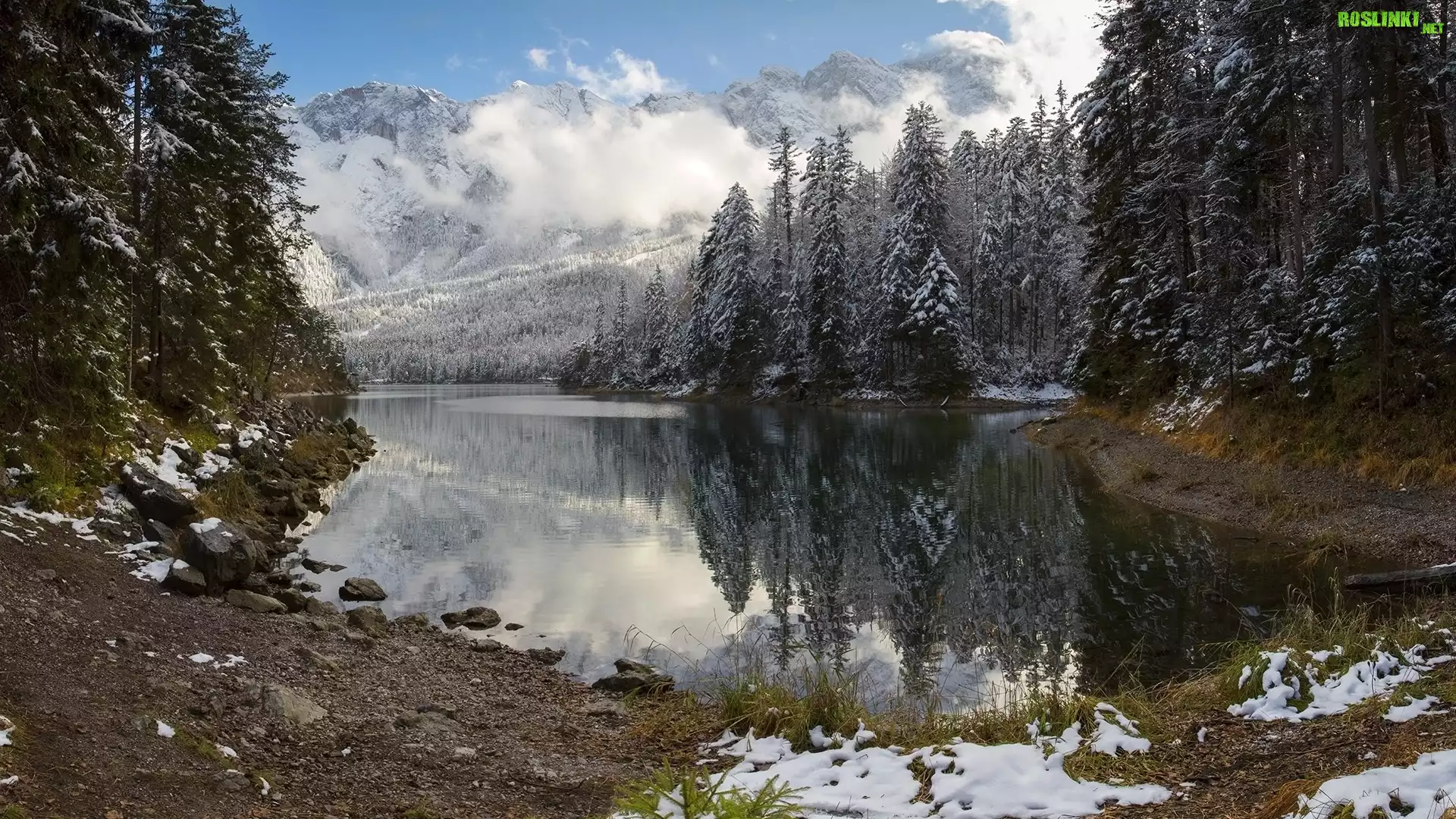 Rośliny: Zima, Jezioro, Góry, Drzewa, Las, Kamienie
