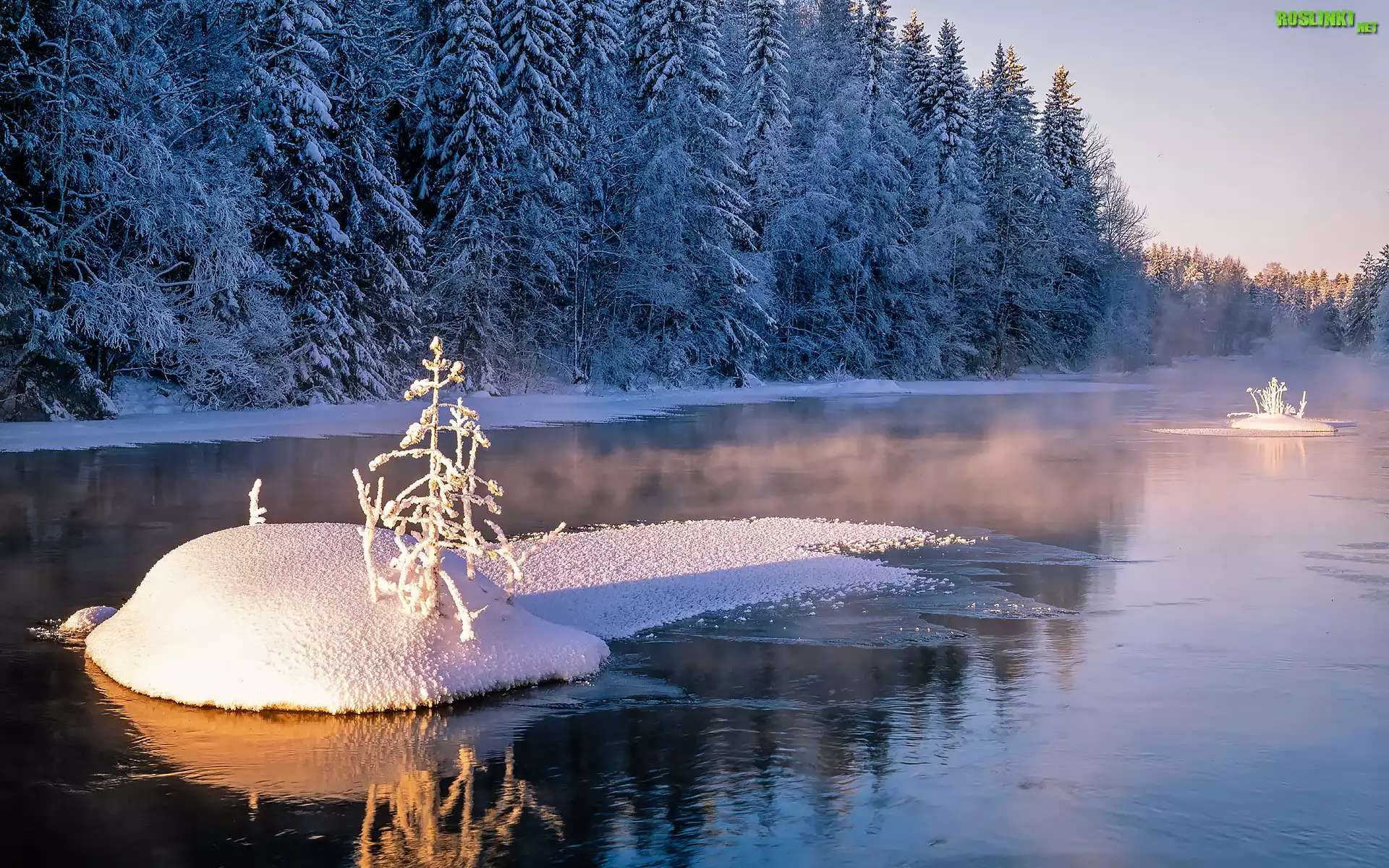 Rośliny: Zima, Rzeka, Ośnieżone, Drzewa, Las, Rośliny