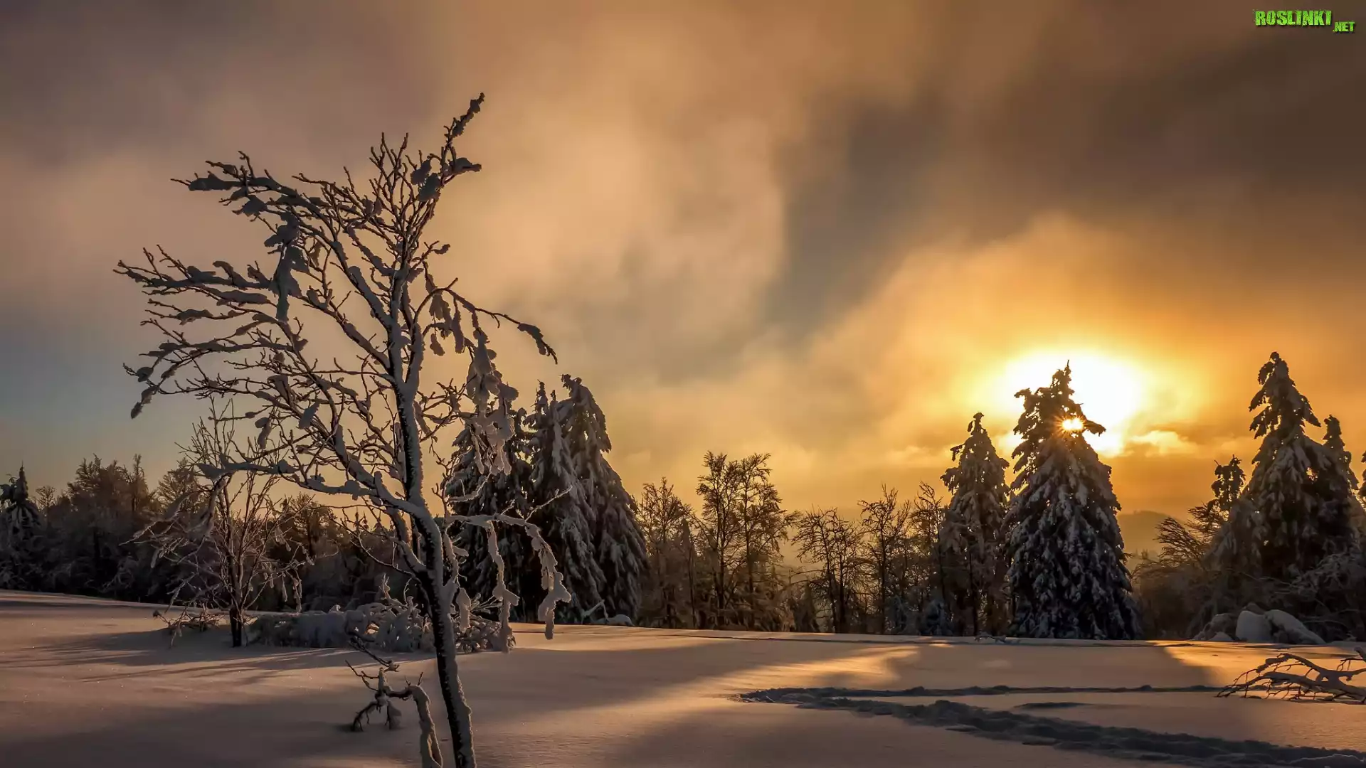 Rośliny: Zima, Wschód Słońca, Las, Drzewa