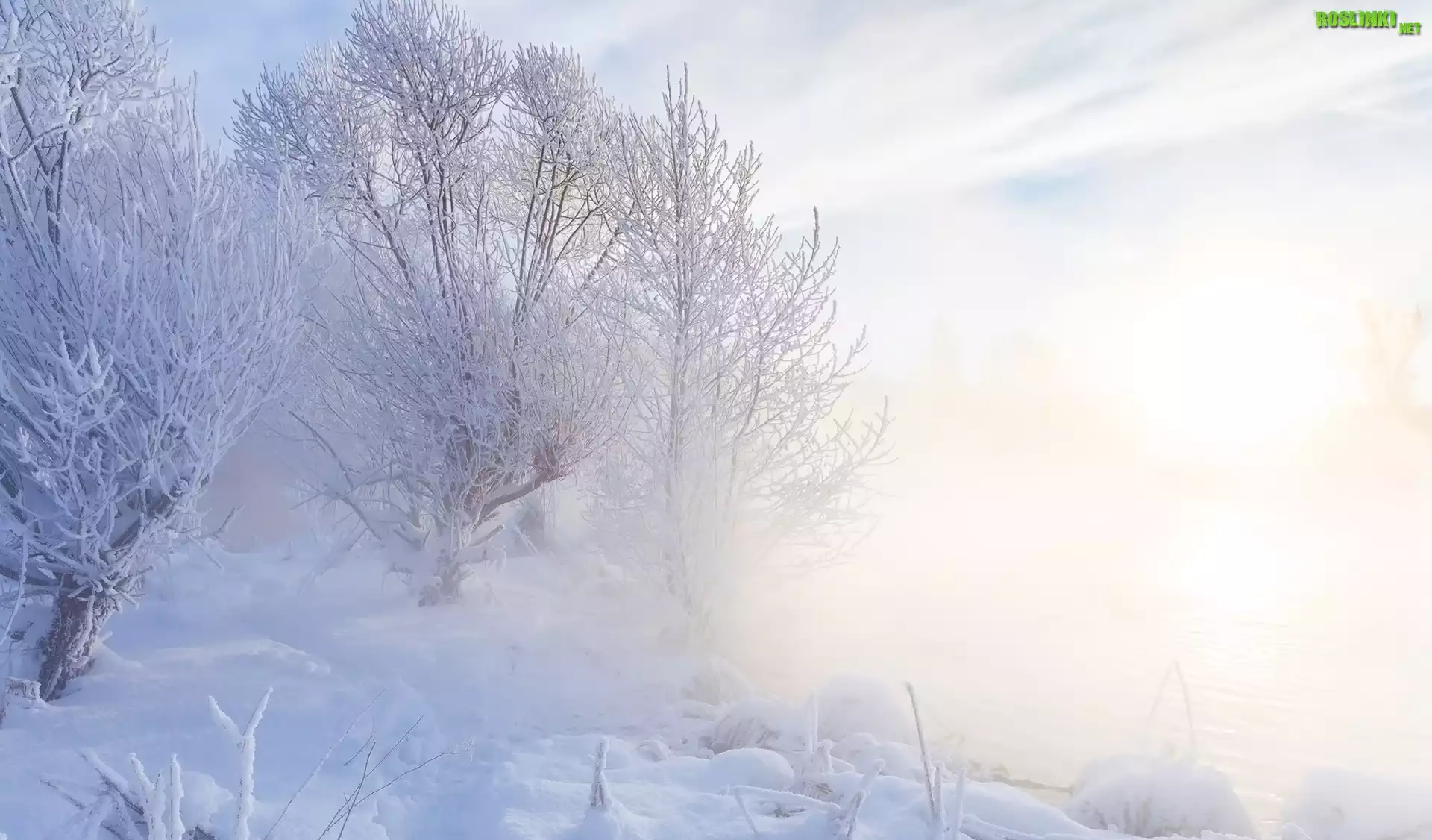 Rośliny: Zima, Drzewa, Droga, Mgła, Jezioro