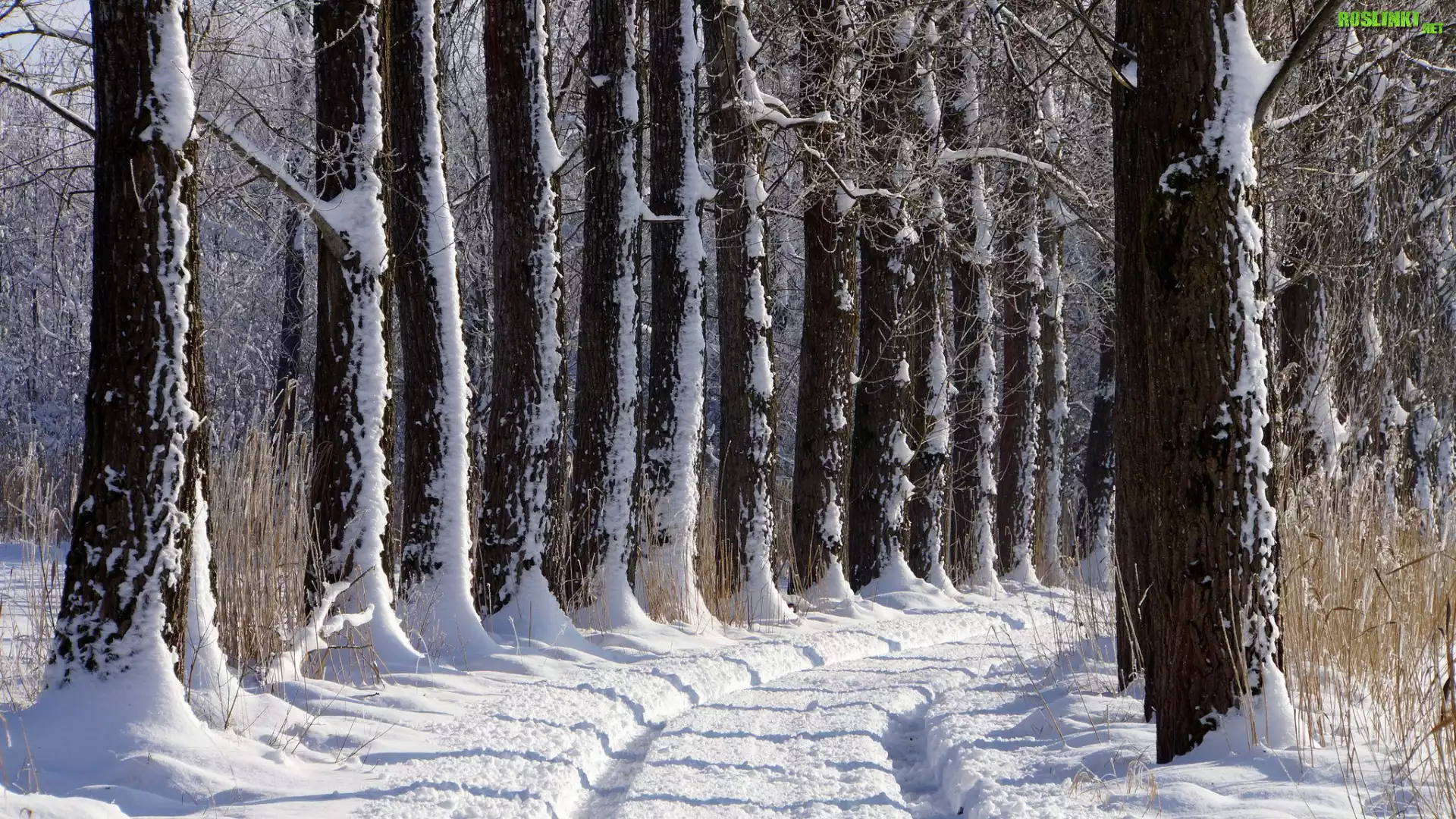Rośliny: Zima, Droga, Drzewa, Śnieg, Koleiny