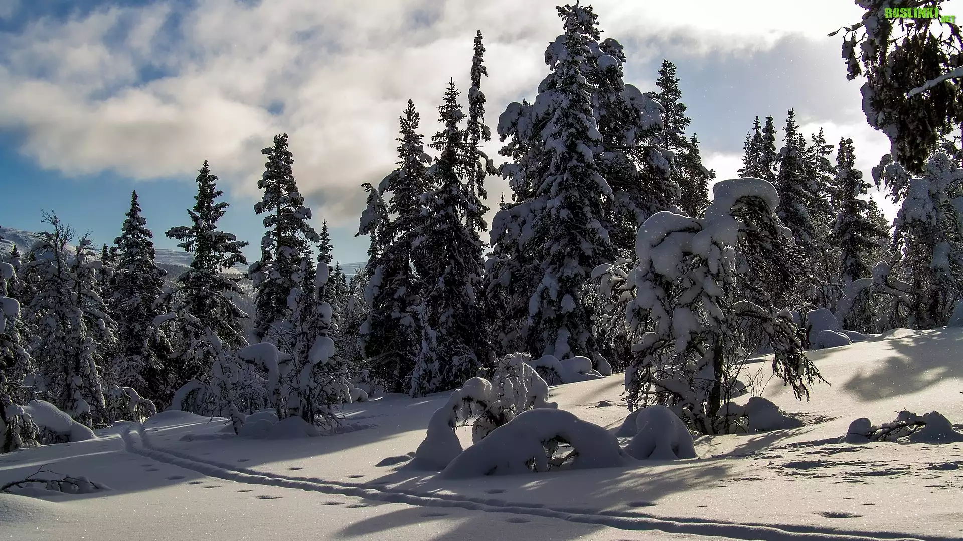 Rośliny: Zima, Drzewa, Śnieg, Ślady
