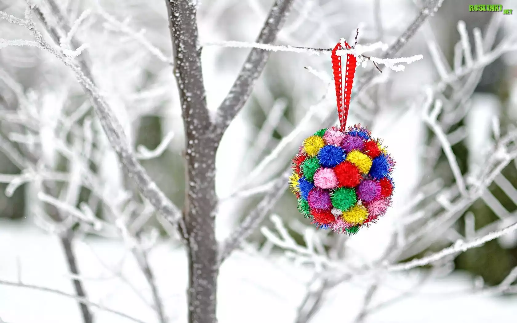 Rośliny: Zima, Krzew, Śnieg, Bombka