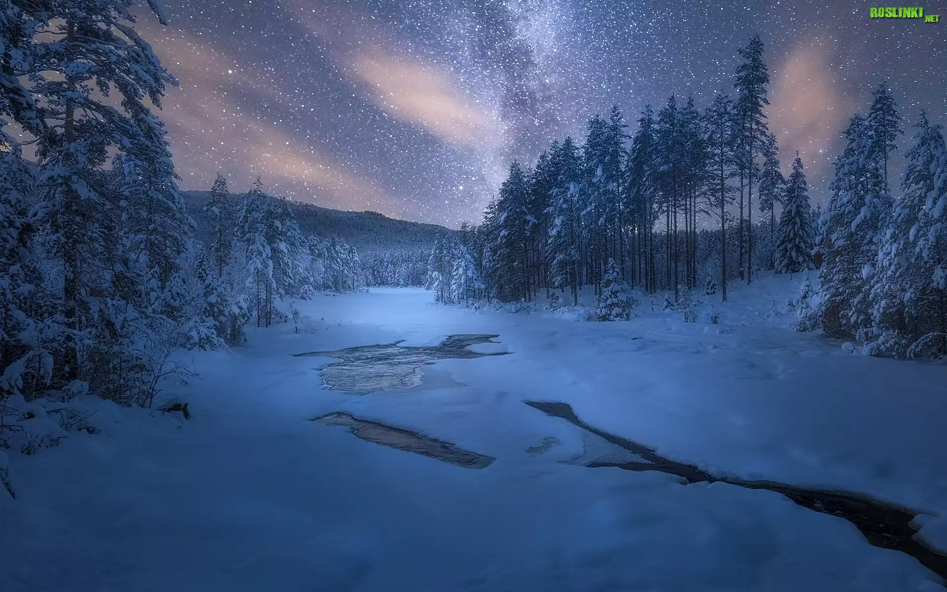 Rośliny: Zima, Zamarznięta, Rzeka, Śnieg, Drzewa