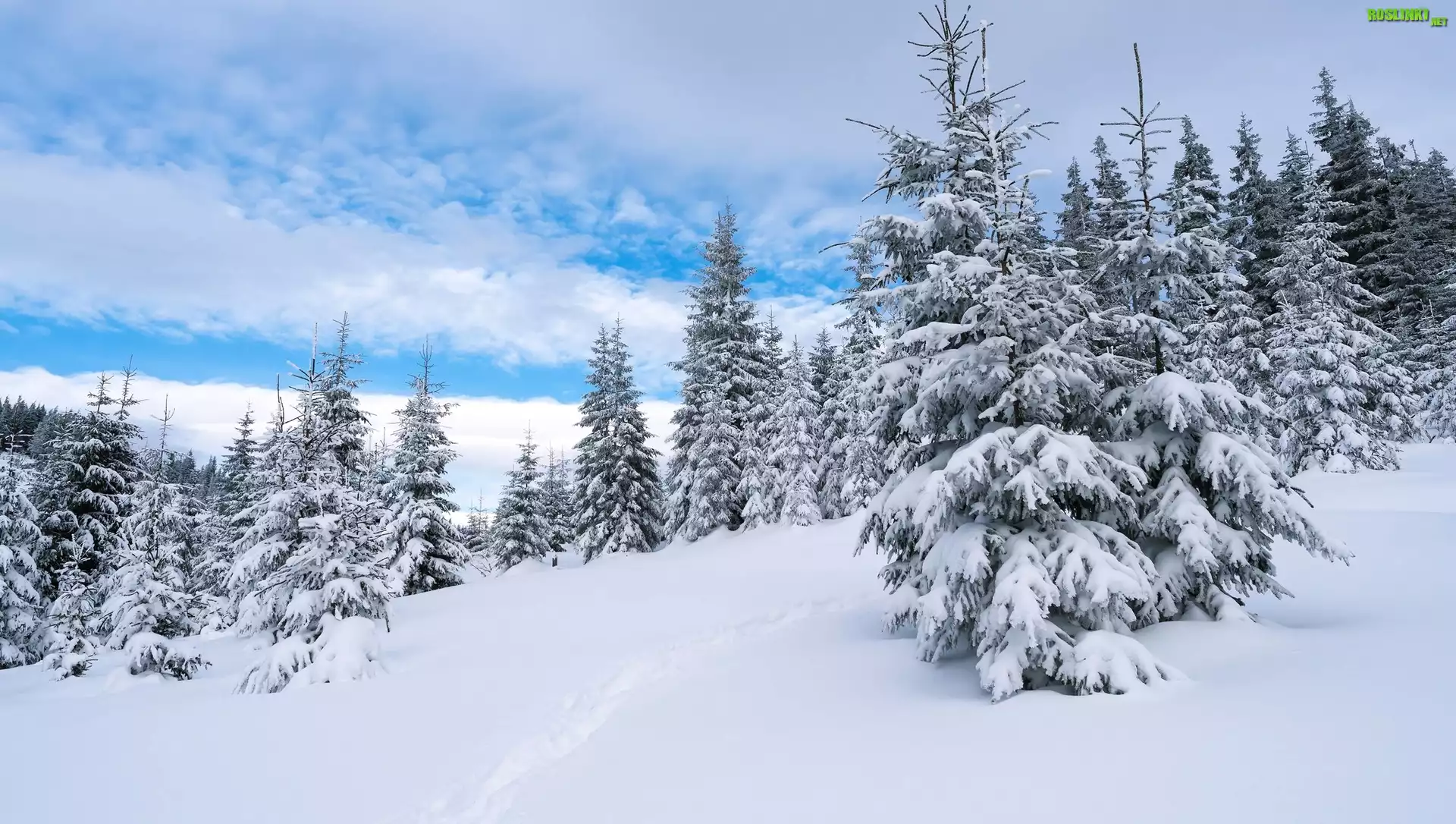 Rośliny: Zima, Wzgórze, Śnieg, Świerki
