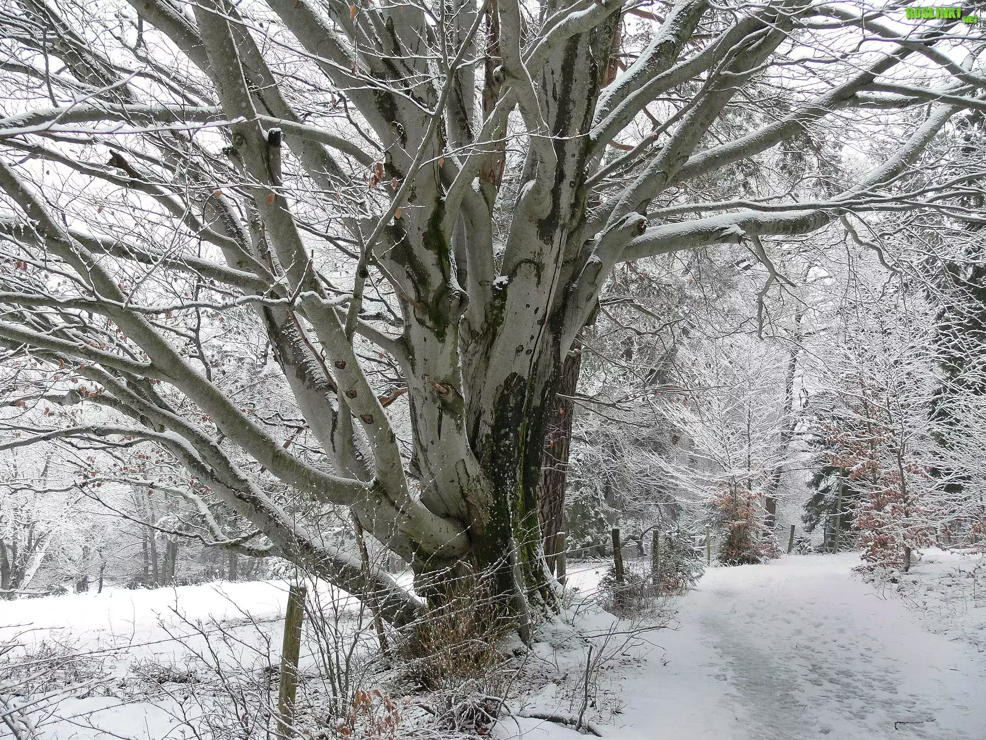 Rośliny: Zima, Drzewa, Droga, Ogrodzenie, Śnieg