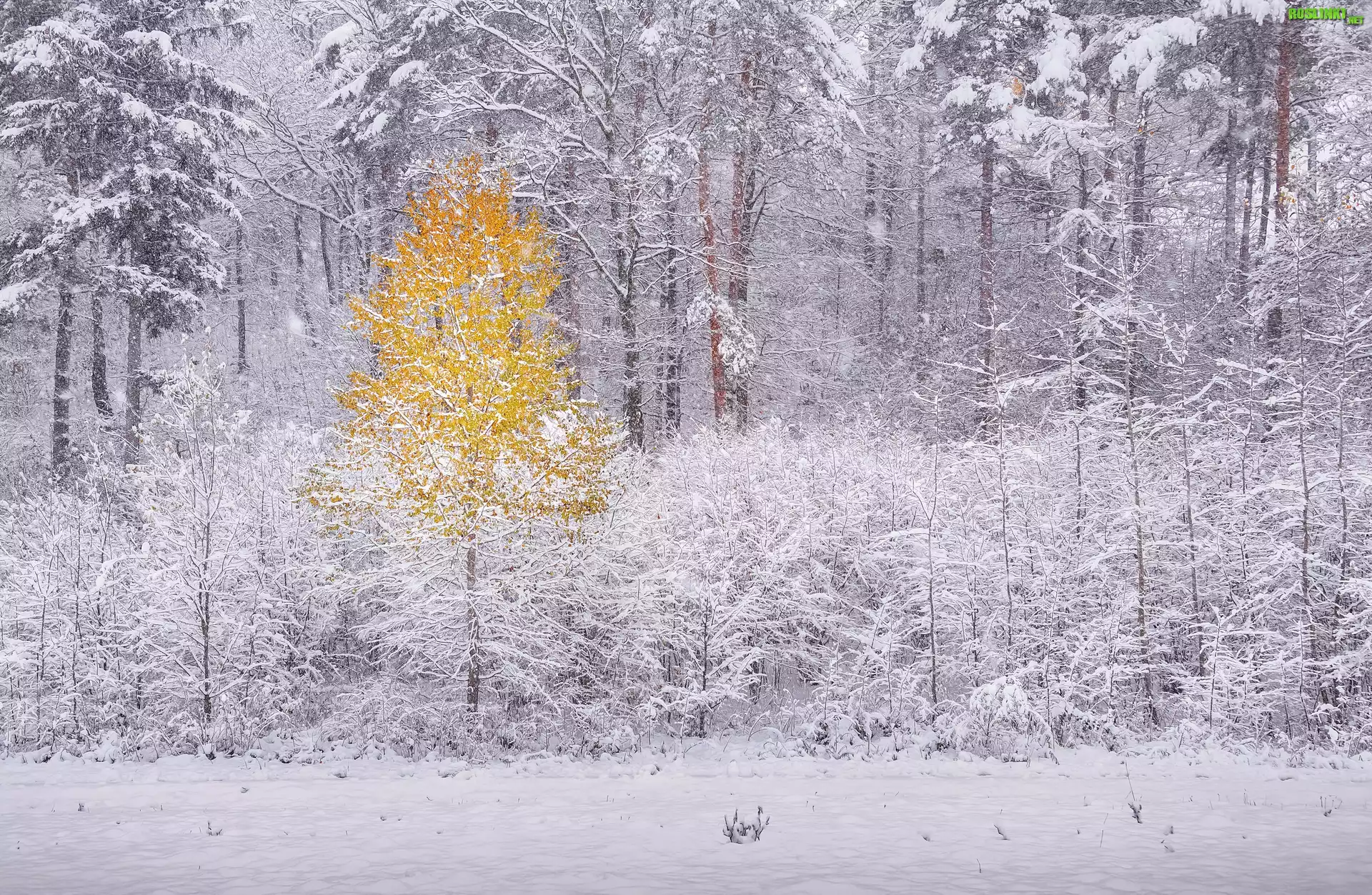 Rośliny: Zima, Las, Śnieg, Jesienne, Żółte, Drzewo