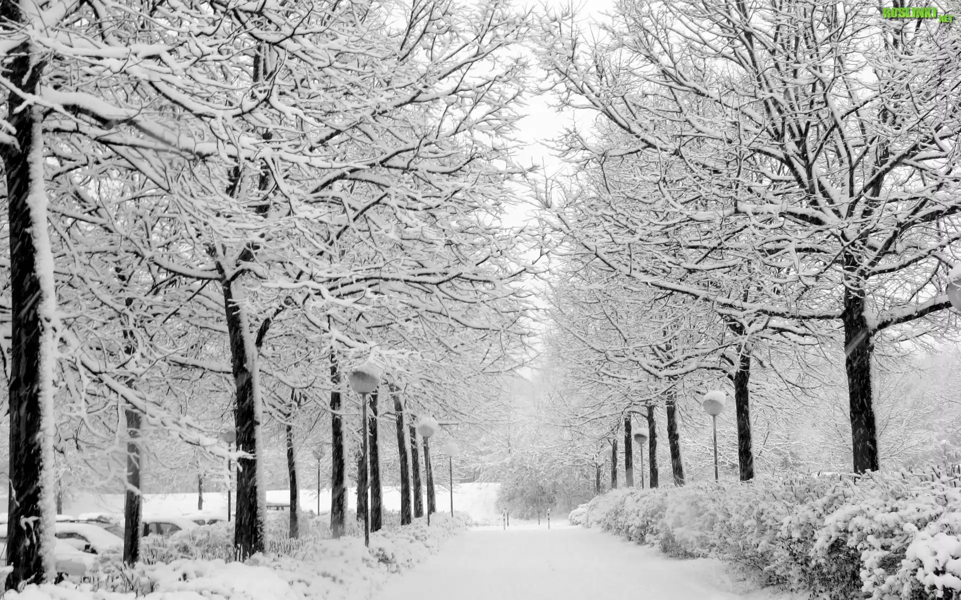 Rośliny: Zima, Alejka, Ośnieżone, Drzewa